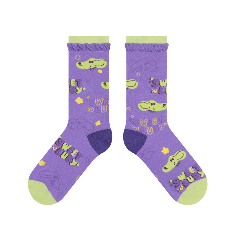 2021 가을 겨울 새 양말 여성용 스위트 독 시리즈 코튼 튜브 일러스트 바람 귀여운 더블 Luo Kou 양말스토어 가기