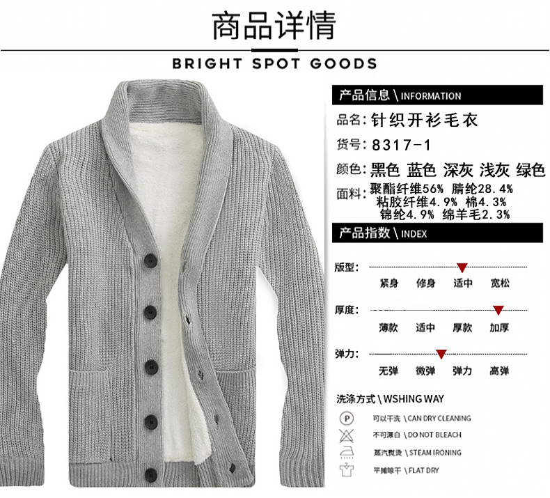 2024년 가을 겨울 남성용 스웨터 니트 가디건 카라 플리스 스웨터 코트 캐주얼 청년 상의 남성복스토어 가기