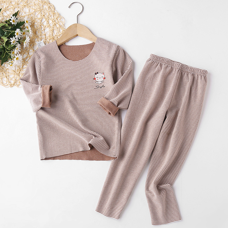 드 롱 어린이 원활한 속옷 세트 가을과 겨울 기모 아기 잠옷 남자의 여자 따뜻한 가을 옷 긴 존스 세트