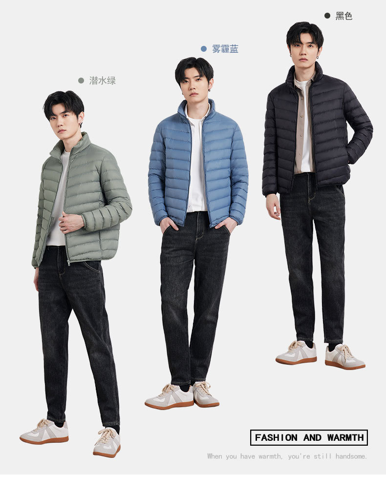 我们今年的新款男士立领羽绒服。秋冬早晚温差大穿着刚刚好,舒适贴身保暖,轻盈无负担。