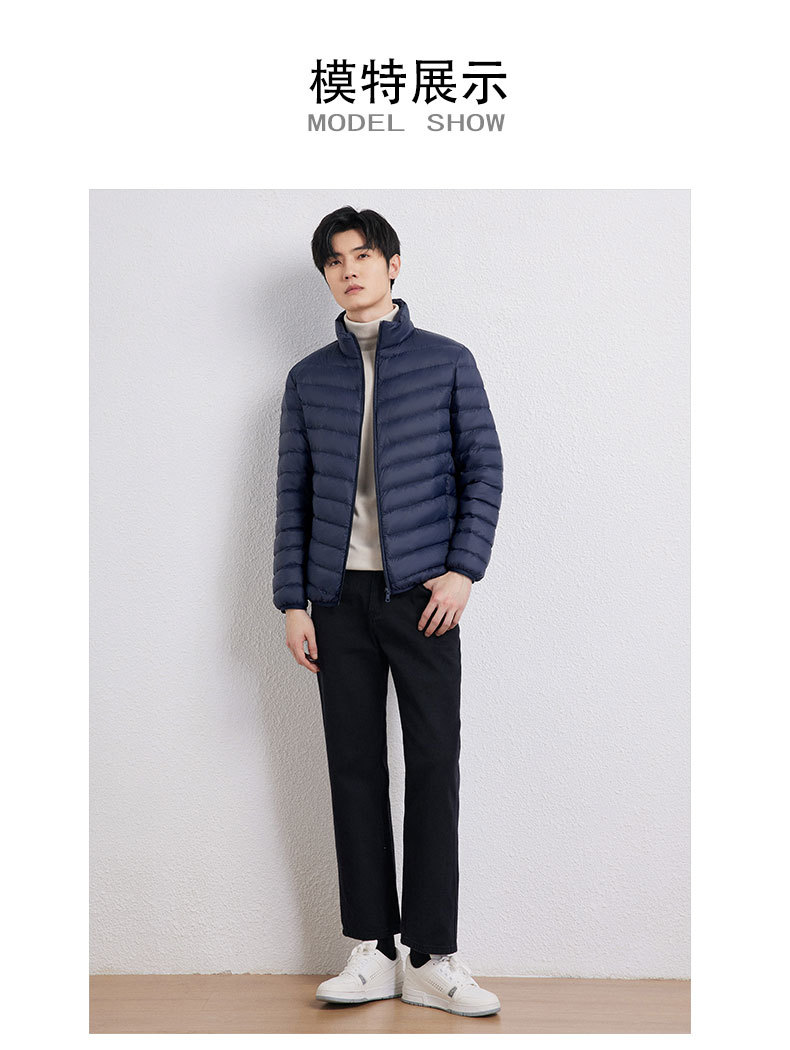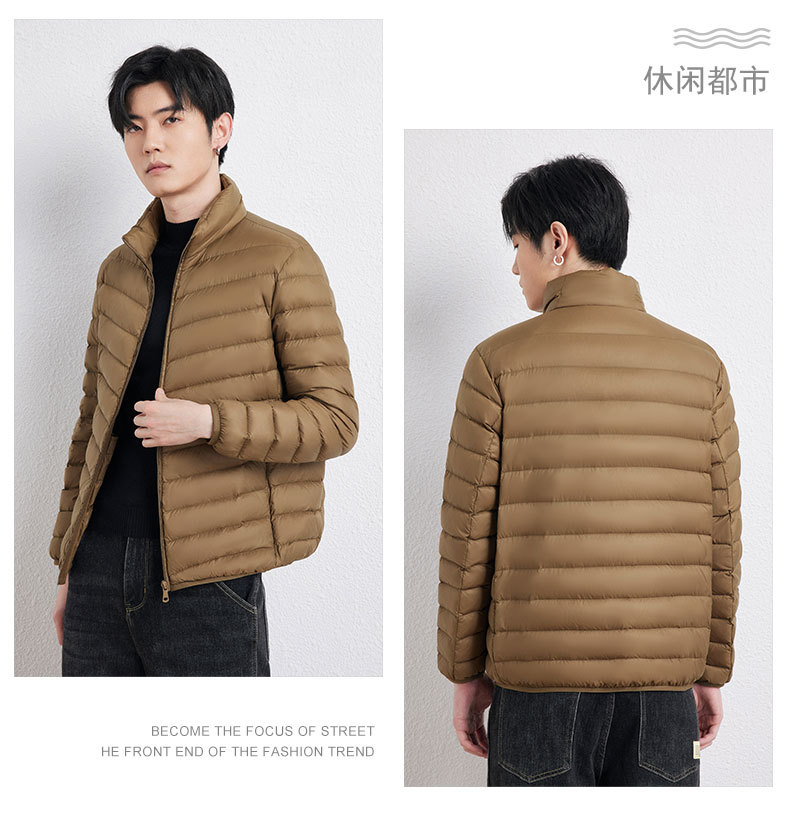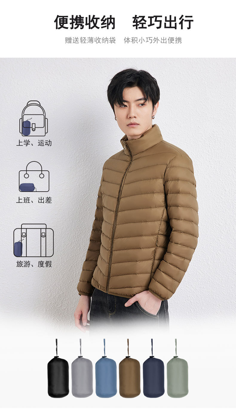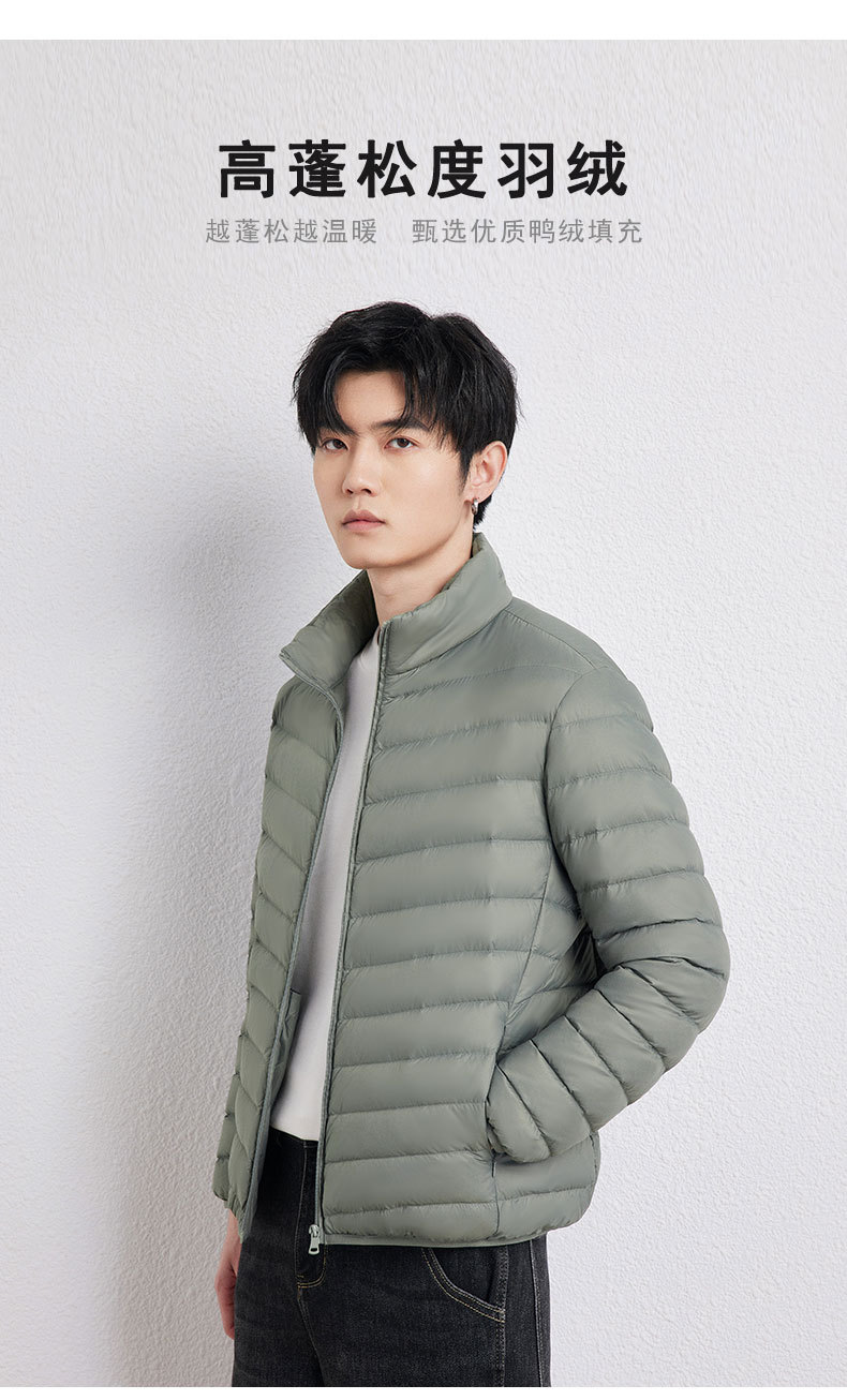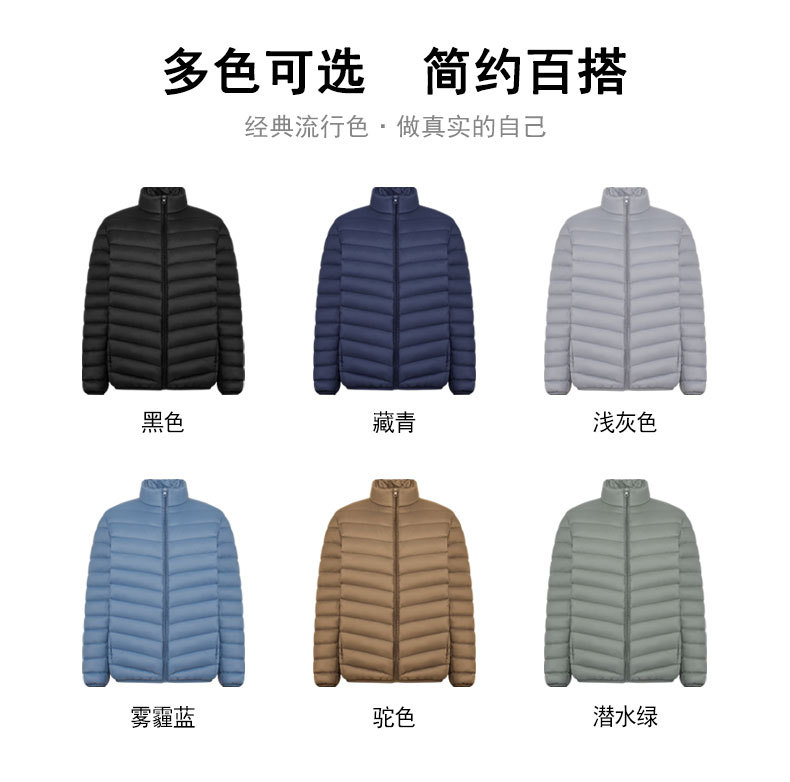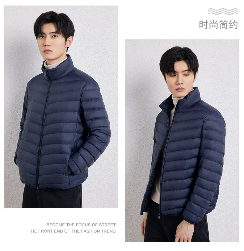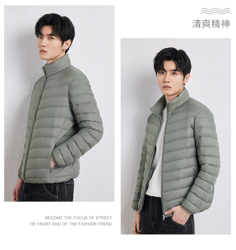 新款男士立领轻薄羽绒服短款,时尚百搭,使用优质90白鸭绒,绒子含量90%
