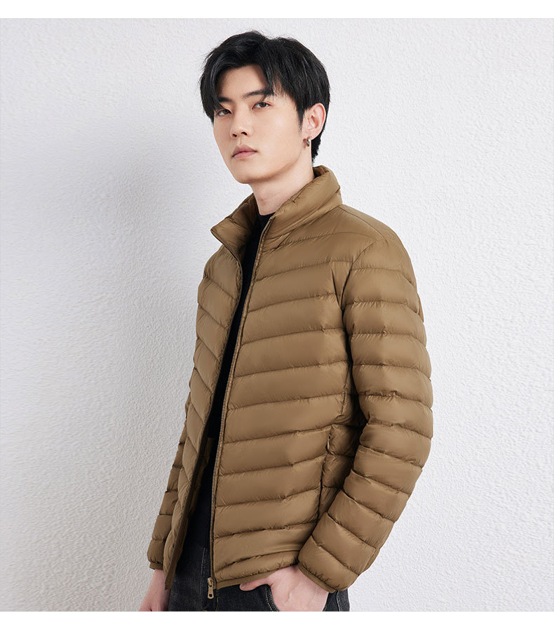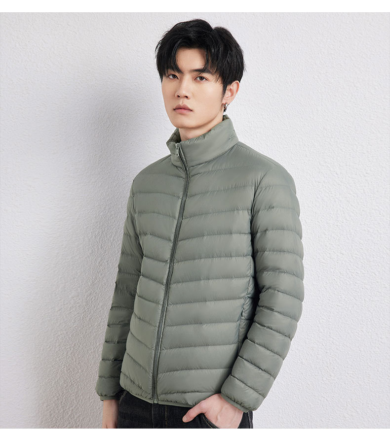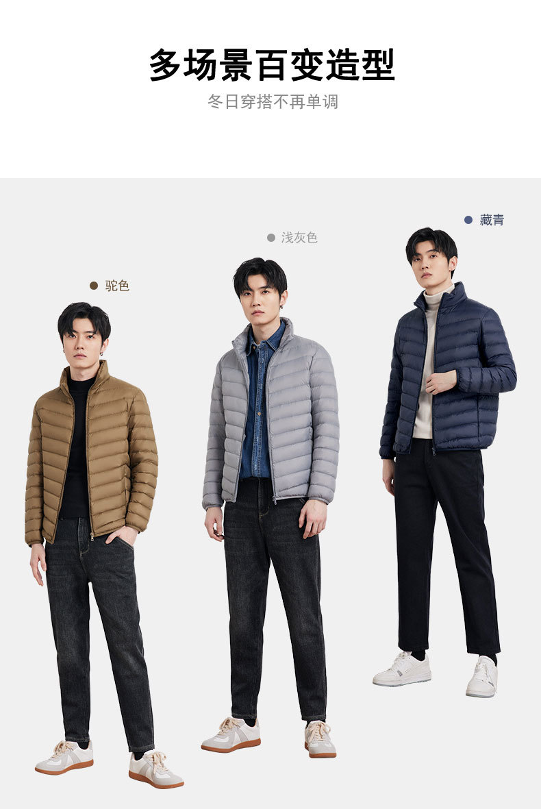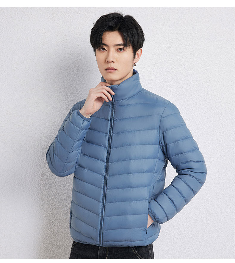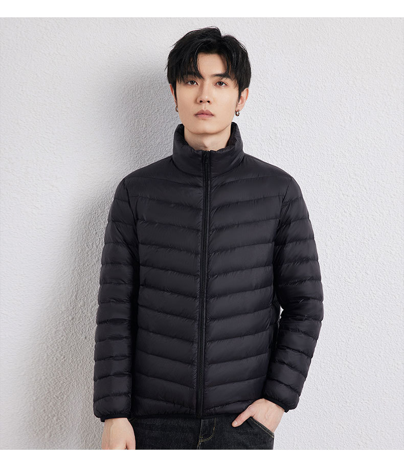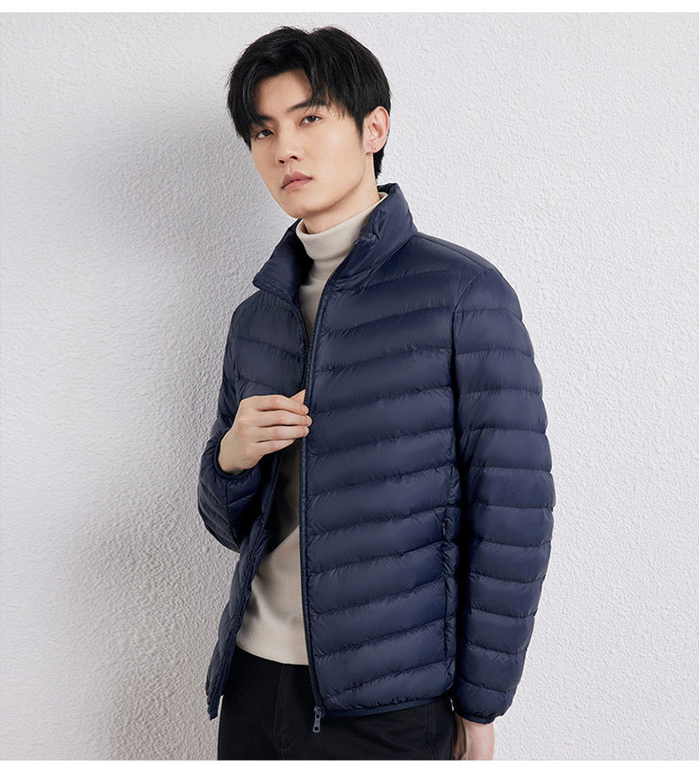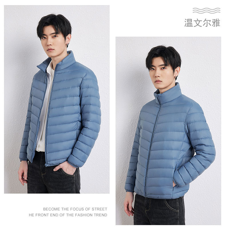 新款男士立领轻薄羽绒服短款,时尚百搭,使用优质90白鸭绒,绒子含量90%