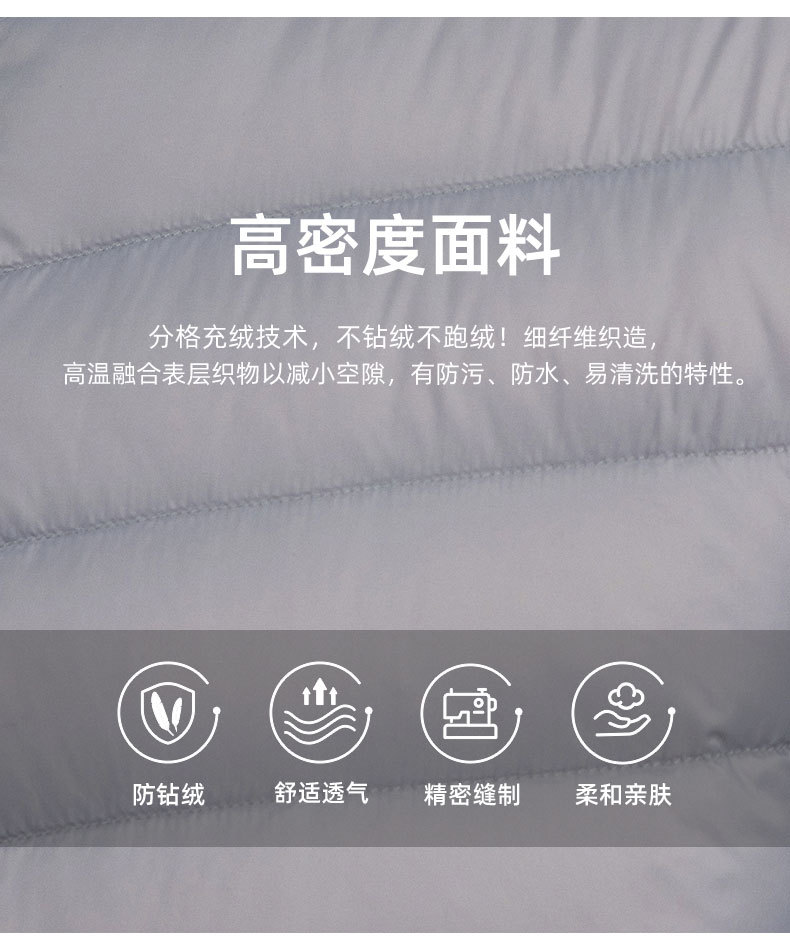 选用国标90白鸭绒填充,优质大绒朵,非常蓬松轻盈,穿着舒适,保暖性也更加的好!