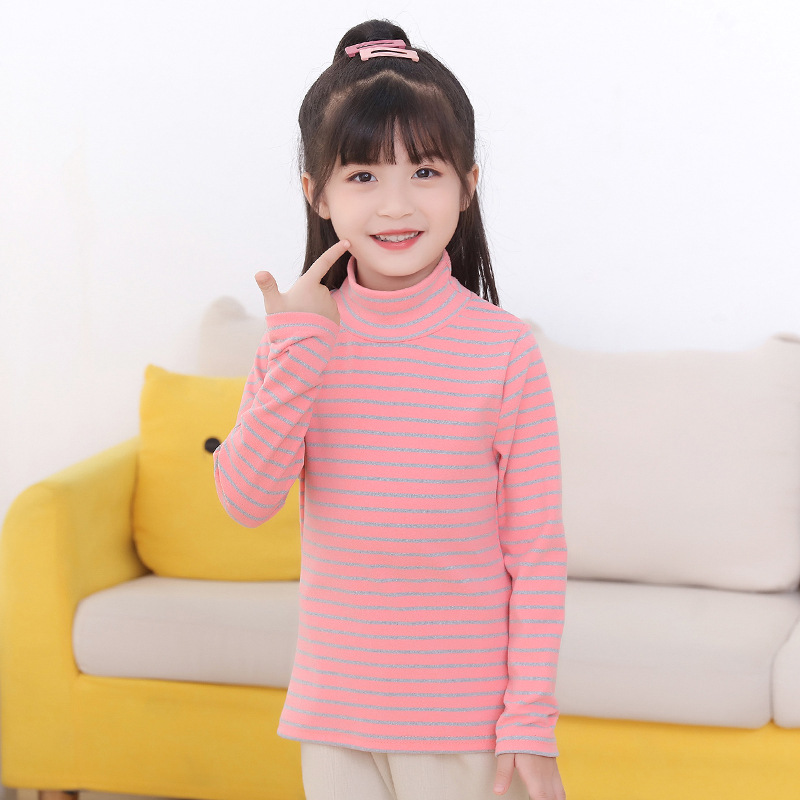 어린이 긴팔 베이스 셔츠 스트레치 가을 옷 소년과 소녀를위한 새로운 스타일 스트라이프 티셔츠 독일 벨벳 미드 하이 넥 싱글 탑 아동복