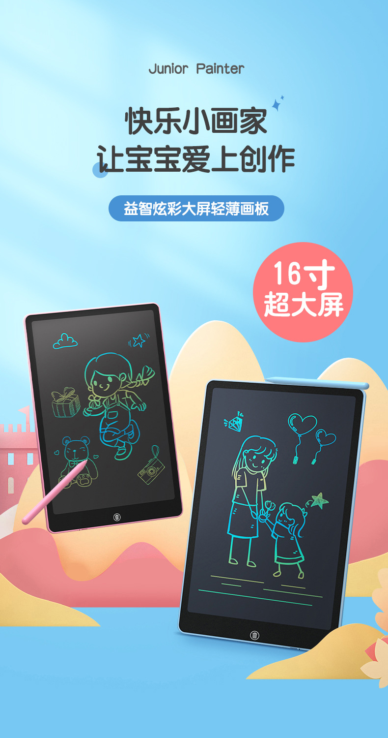 第四代微电子液晶手写板画板 ,无辐射 安全环保,反复书写,一键清除,方便快捷适用于学生验算草稿,轻便易携带,液晶屏幕,保护眼睛,防疲劳适用于白领 上班族 代替传统便利贴,环保无纸化适用于聋哑人沟通交流,方便简单易使用,沟通畅通无阻适用于设计人群 创意想法随手勾画,简单方便 轻松留住创意适用于孩童,随意个性涂鸦 发挥特长培养兴趣 再也不会把家里的墙壁 家具 爸爸妈妈的书籍证件画花了。