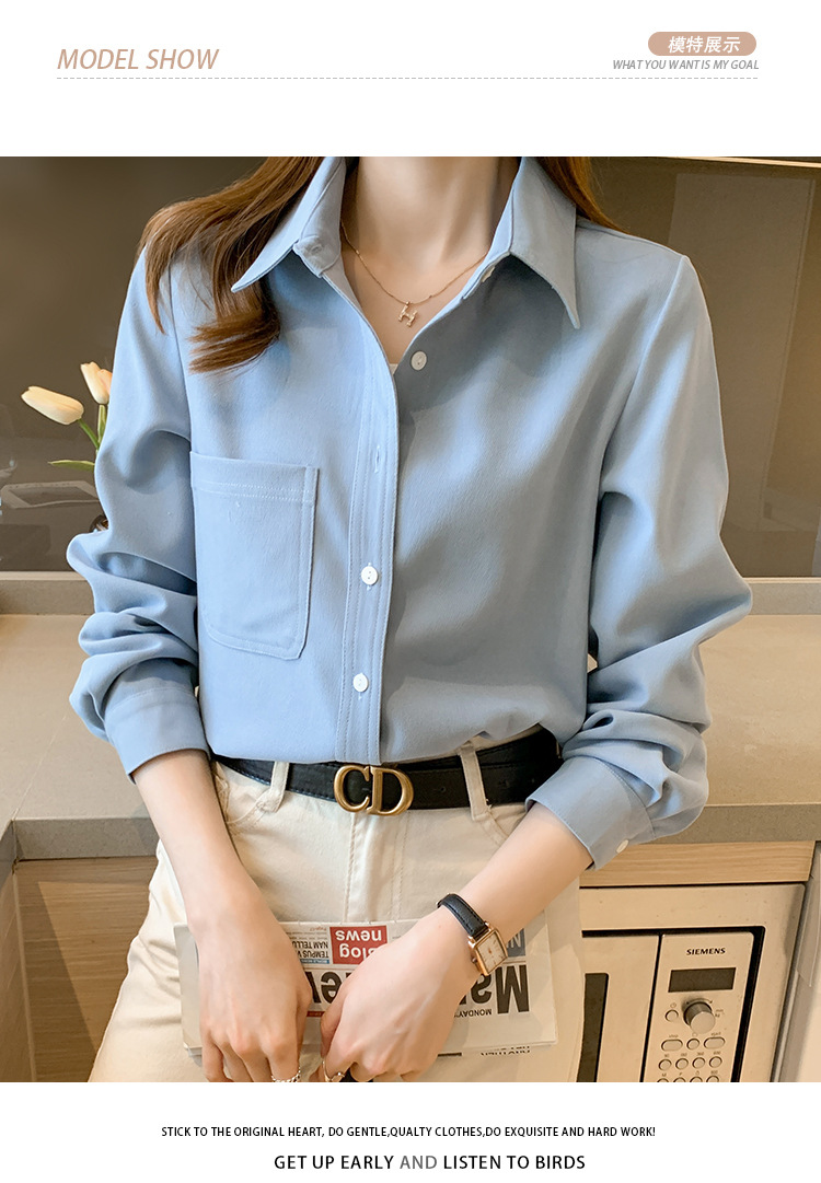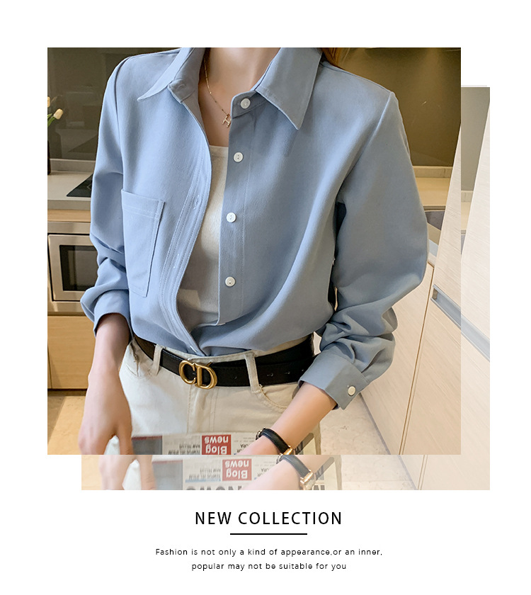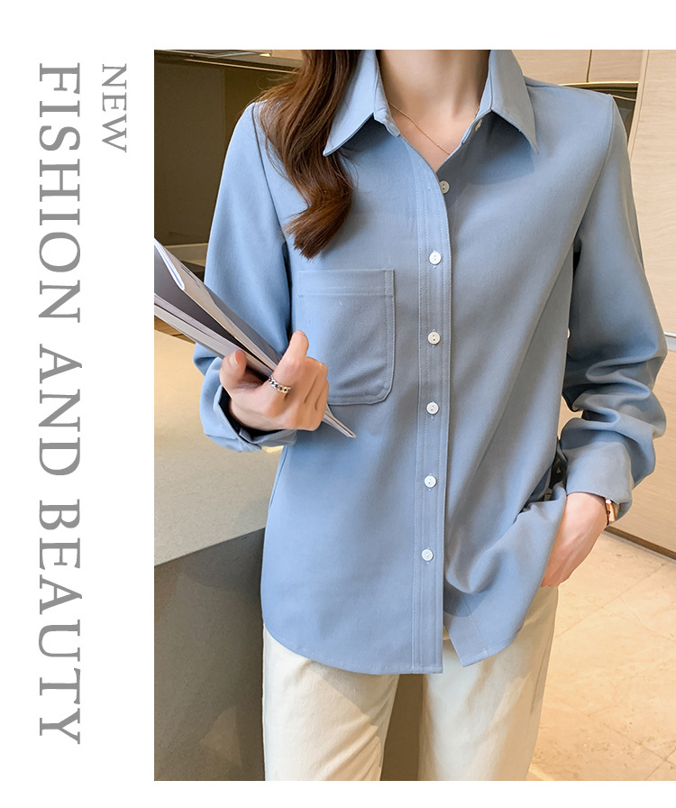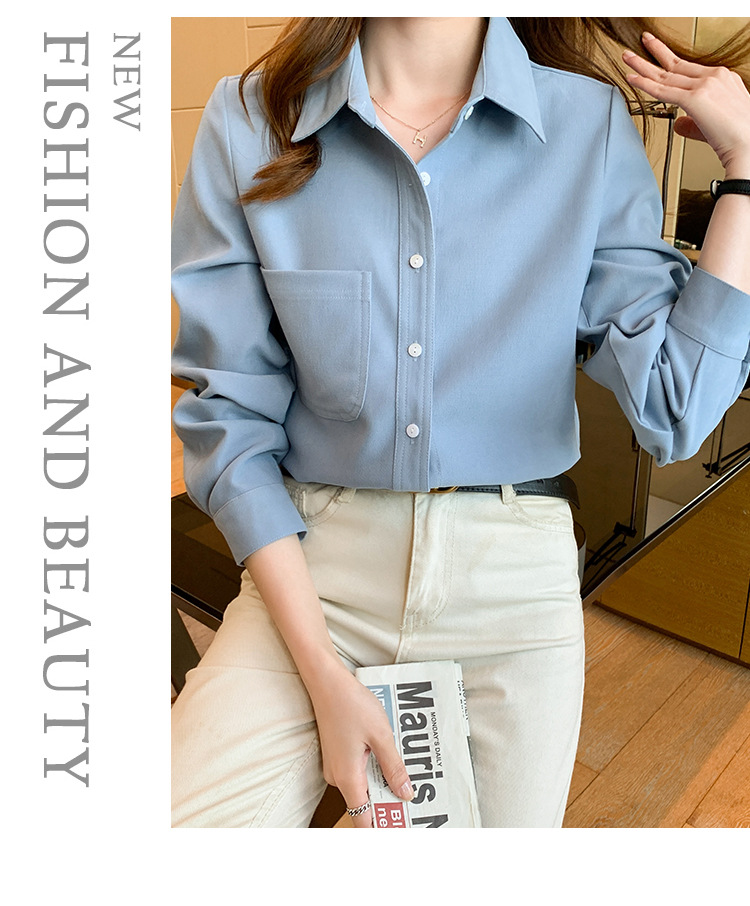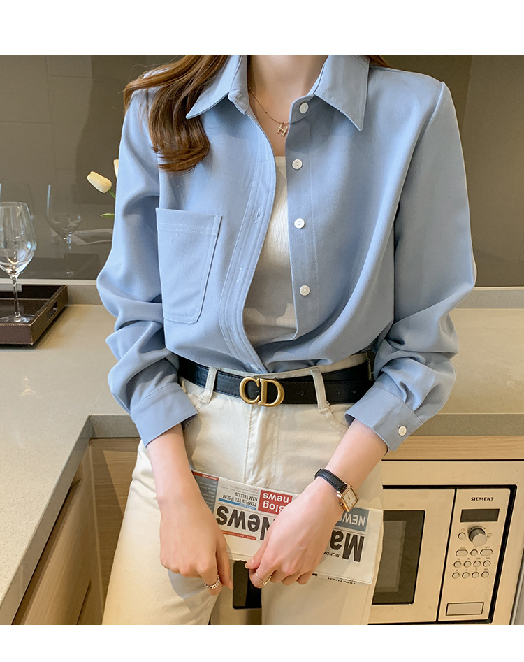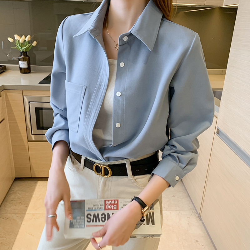 블루 스택 셔츠 여성용 봄 새로운 레트로 프랑스 탑 디자인 틈새 느슨한 스크럽 셔츠 재킷