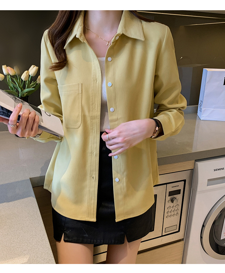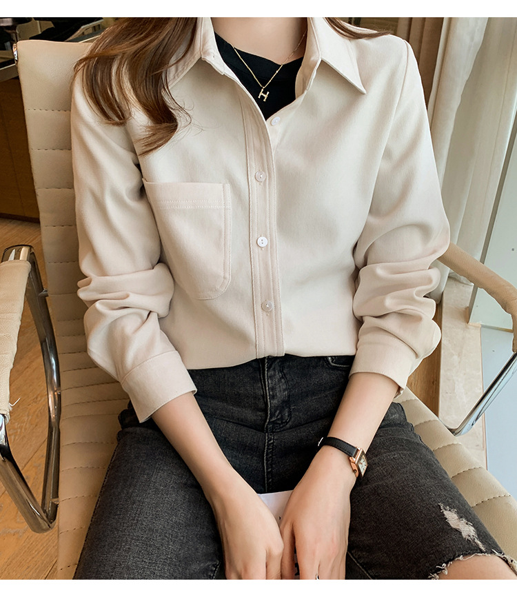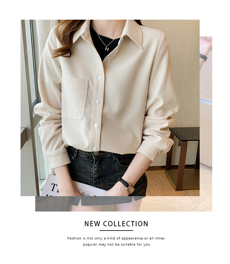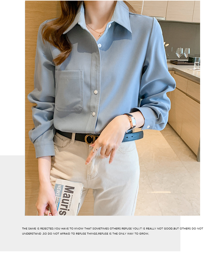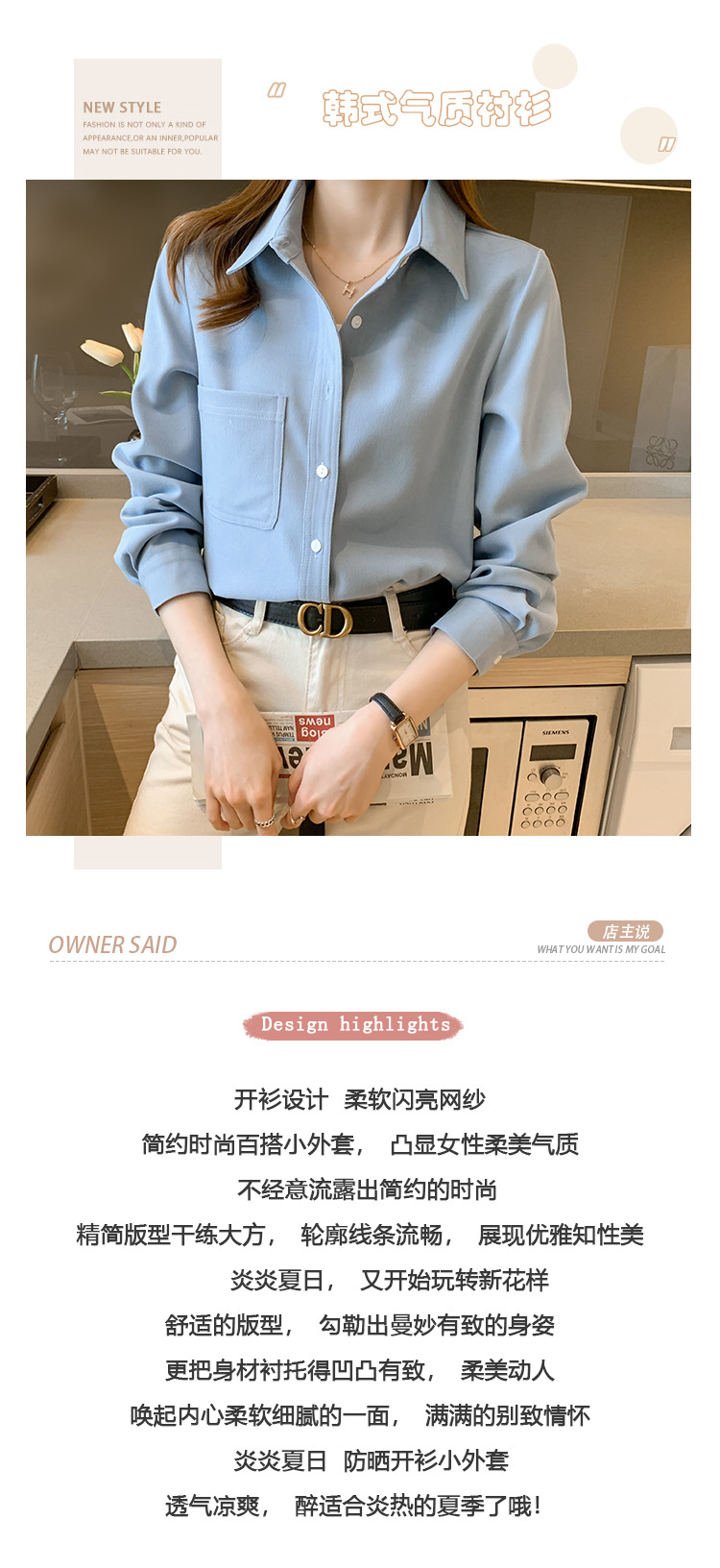 블루 스택 셔츠 여성용 봄 새로운 레트로 프랑스 탑 디자인 틈새 느슨한 스크럽 셔츠 재킷