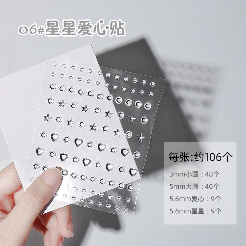 접착제 없는 네일 아트 진주 스티커 접착 입체 투명 라인 석 매직 컬러 어린이 신부 무대 눈물 메이크업 장식