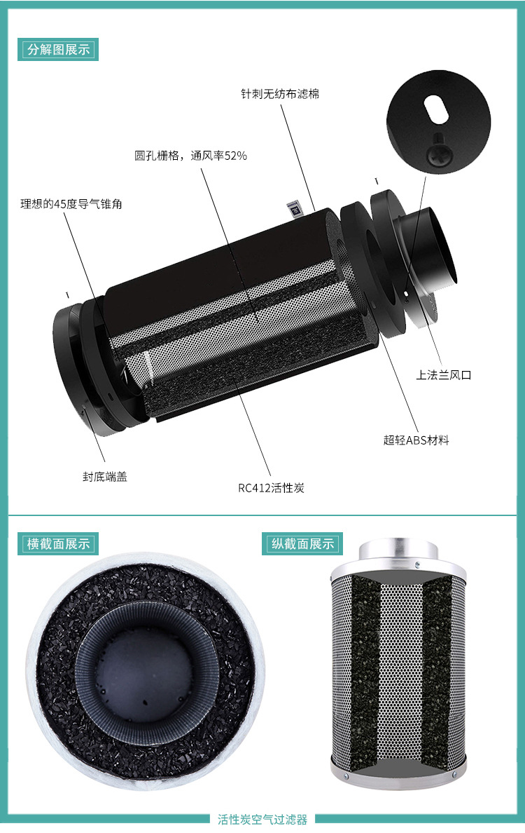자체 제작 활성탄 공기 청정기 필터 엘리먼트 필터 스크린 필터 배럴 포름 알데히드 수경 식물 텐트 냄새 흡수