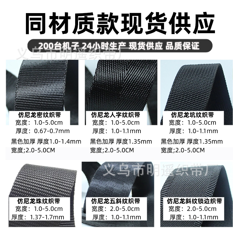 공장 도매 흑백 컬러 웨빙 두꺼운 암호화 모조 나일론 고밀도 일반 스트랩 배낭 스트랩 나일론 웨빙