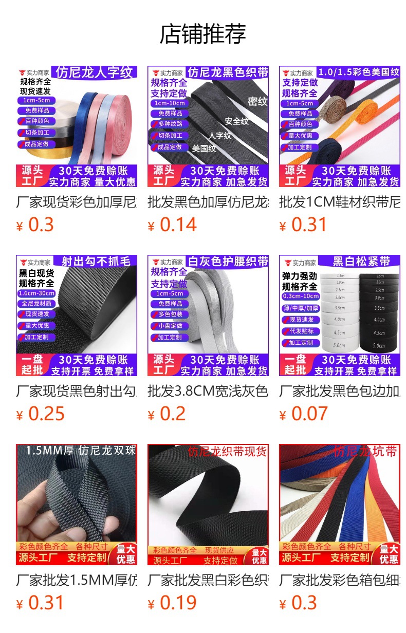 공장 도매 흑백 컬러 웨빙 두꺼운 암호화 모조 나일론 고밀도 일반 스트랩 배낭 스트랩 나일론 웨빙스토어 가기