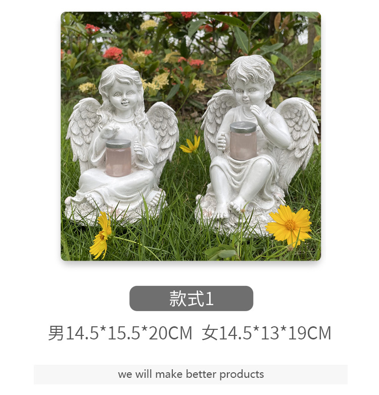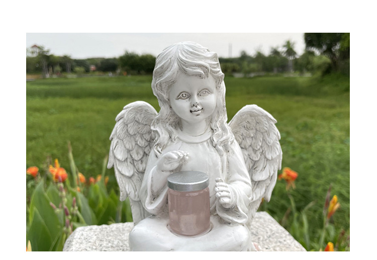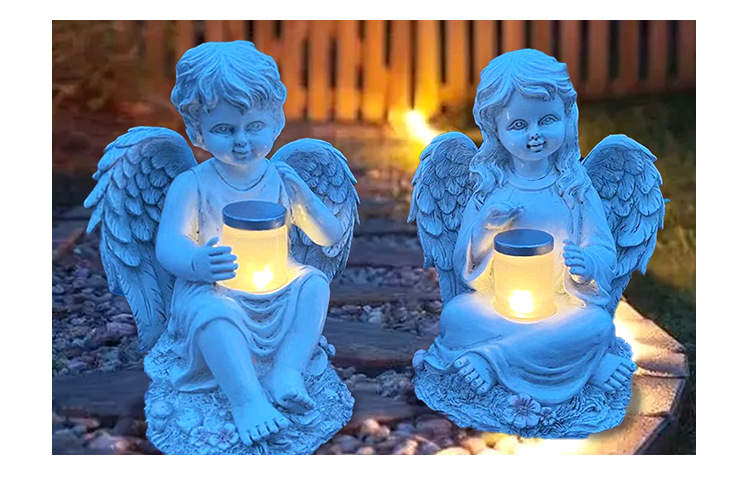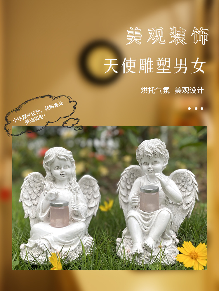 국경을 넘는 정원 소녀 천사 장식품 가정 정원 태양광 소년 레진 장식 조각 정원 장식스토어 가기