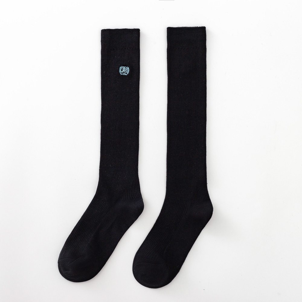 일본 대학 스타일 흰색 자수 중간 길이 양말 단색 긴 모든 일치 얕은 양말 jk 균일 더블 바늘 스택 여성용