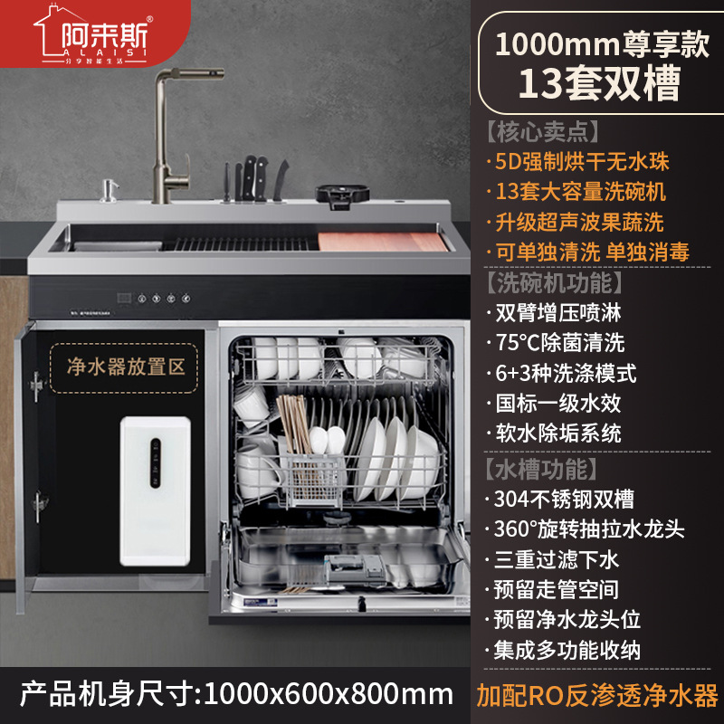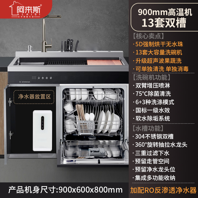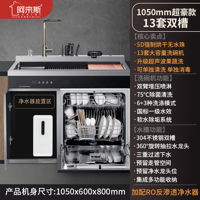 • 1.05 m 더블 슬롯 13 조각 세트 식기 세척기 RO 정수기