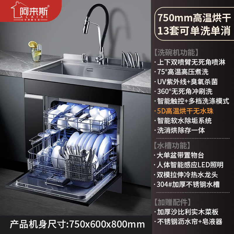 가정용 통합 싱크 식기 세척기 대용량 초음파 13 피스 세트 청소 및 보관 통합 캐비닛 식기 세척기스토어 가기