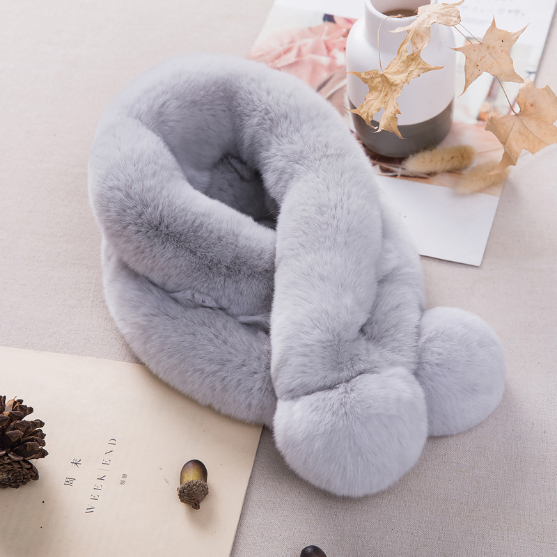 새로운 렉스 토끼 모피 스카프 여성용 겨울 게으른 토끼 따뜻한 리얼 코즈 헤어 더블 볼 한국 유행 목 두꺼운 모든 매치