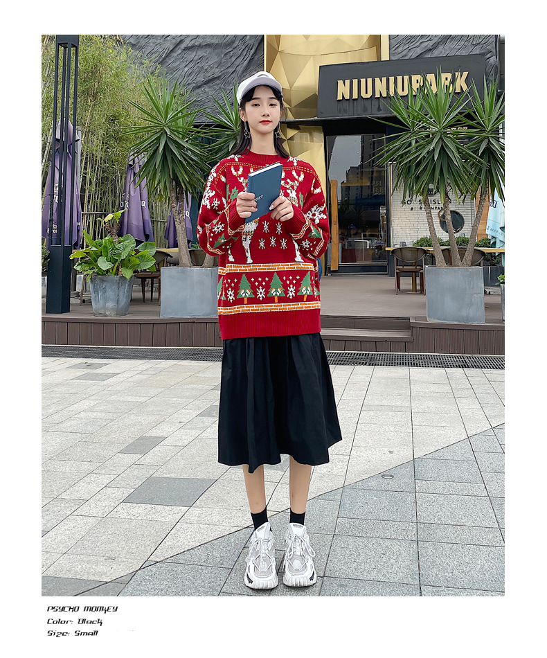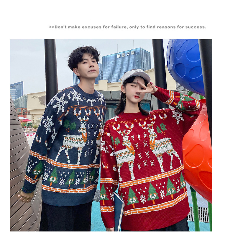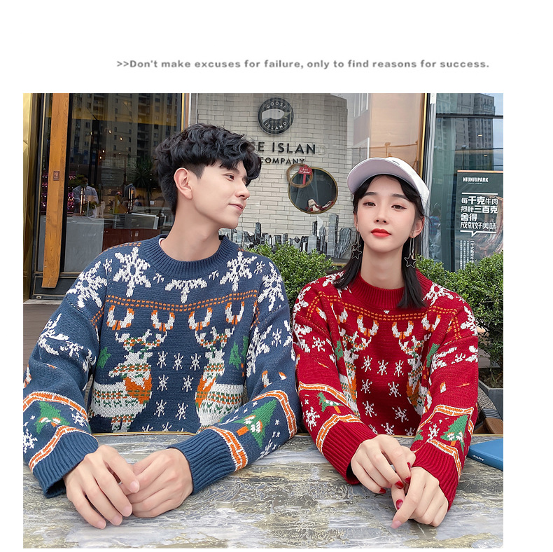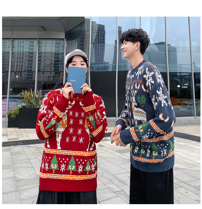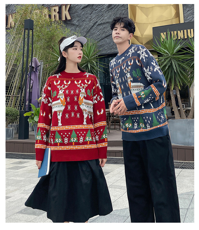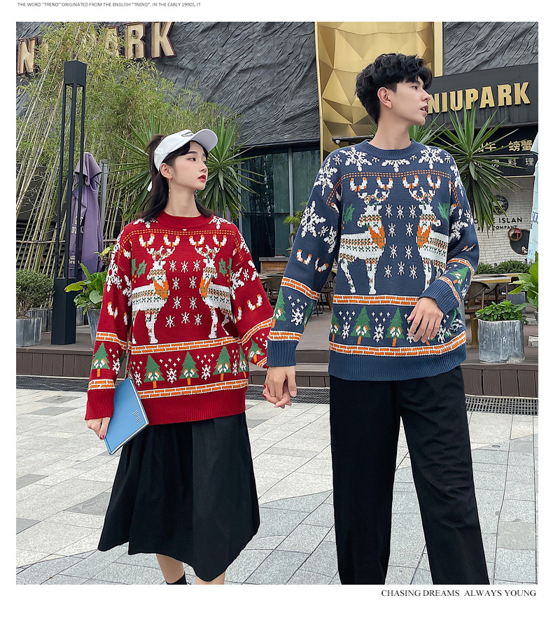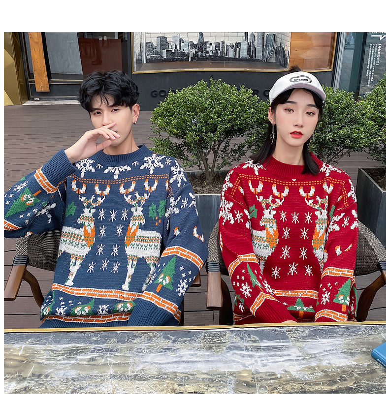 크리스마스 튀김 스트리트 크루넥 커플 의상 게으른 스타일 스웨터 엘크 겨울 슈퍼 인기 느슨한 한국 스타일 겉옷