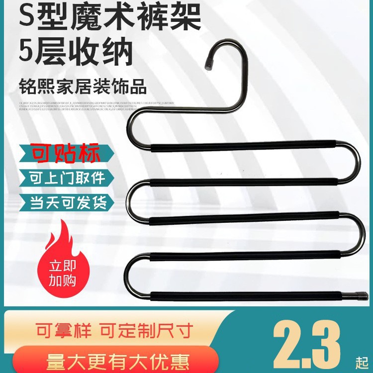 기숙사 학생을위한 스테인레스 스틸 다기능 매직 S 자형 다층 바지 랙 바지 걸이 옷장 보관 선반스토어 가기