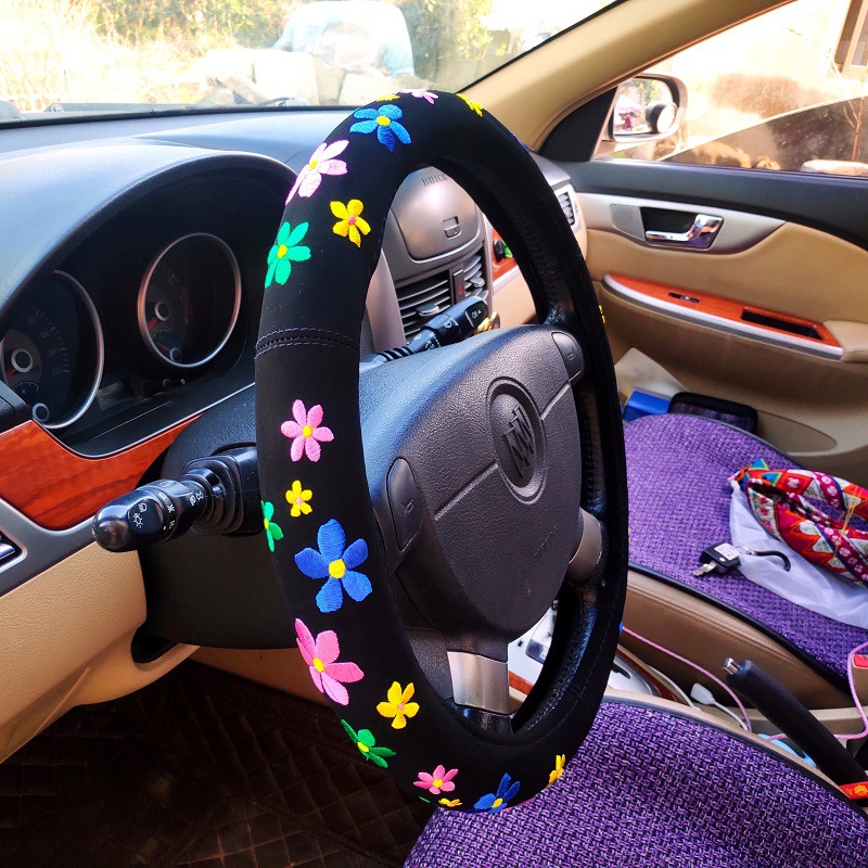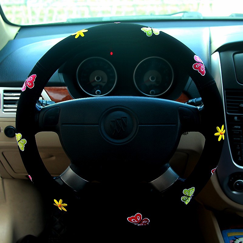 사계절 일반 자수 나비 꽃 대마 대비 색상 자동차 핸들 커버 자동차 핸들 커버 내부 링과 크로스 보더스토어 가기