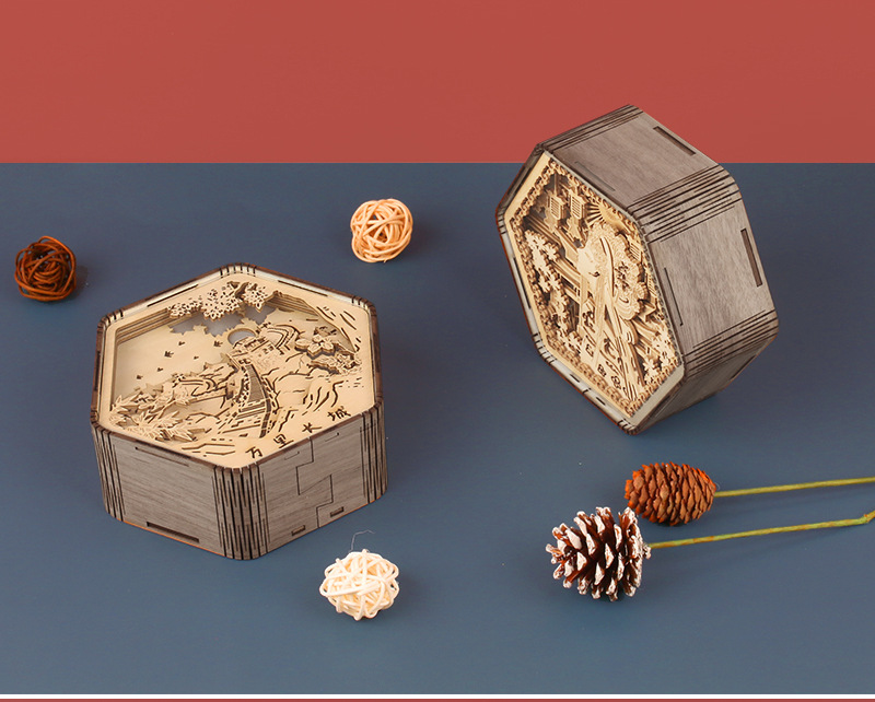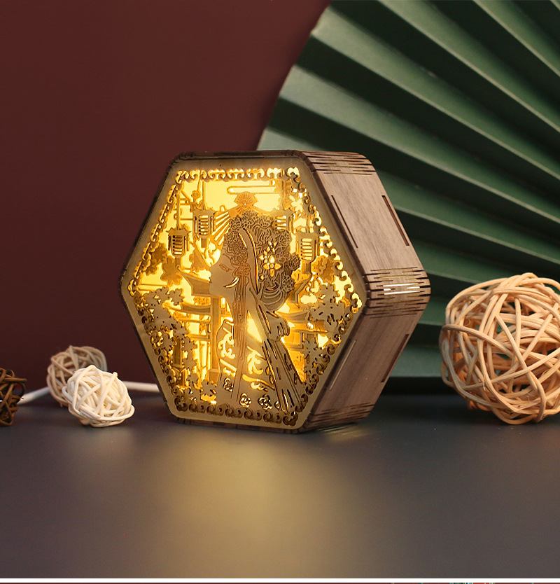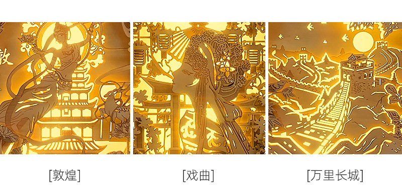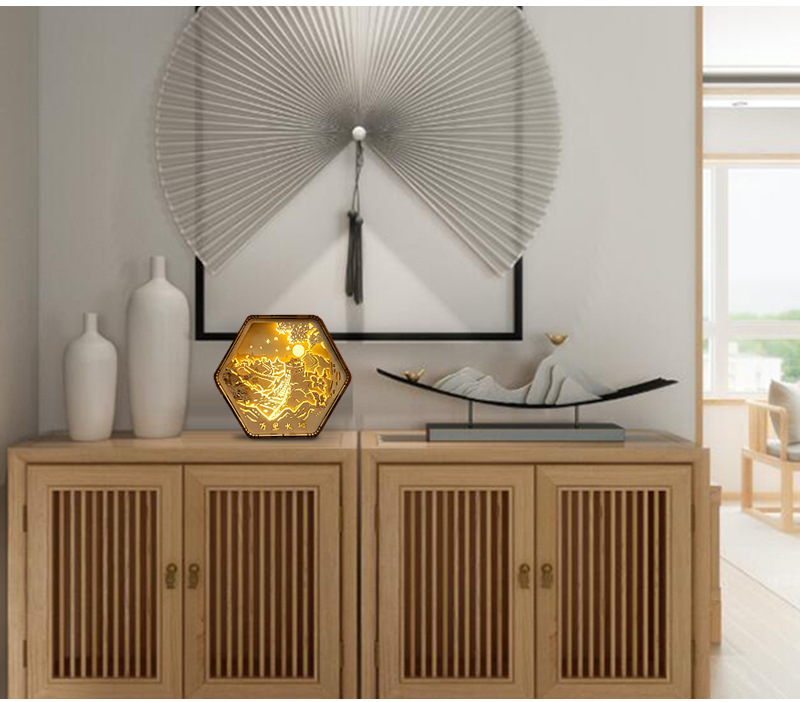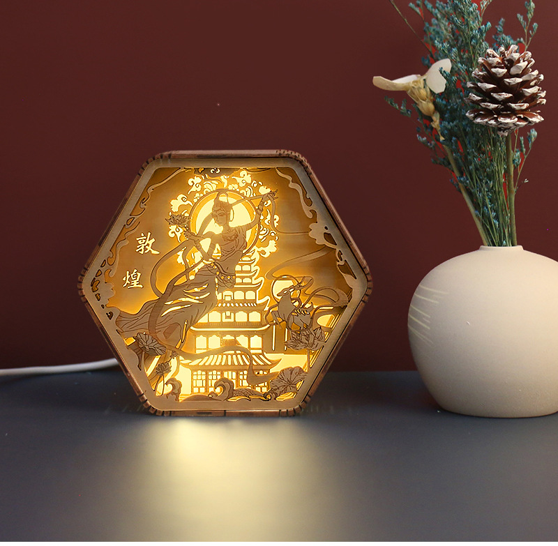 둔황 나무 조각 램프 창조적 인 선물 복고풍 창조적 인 선물 침대 옆 3D 야간 조명 장식 장식품 테이블 램프 종이 조각 램프