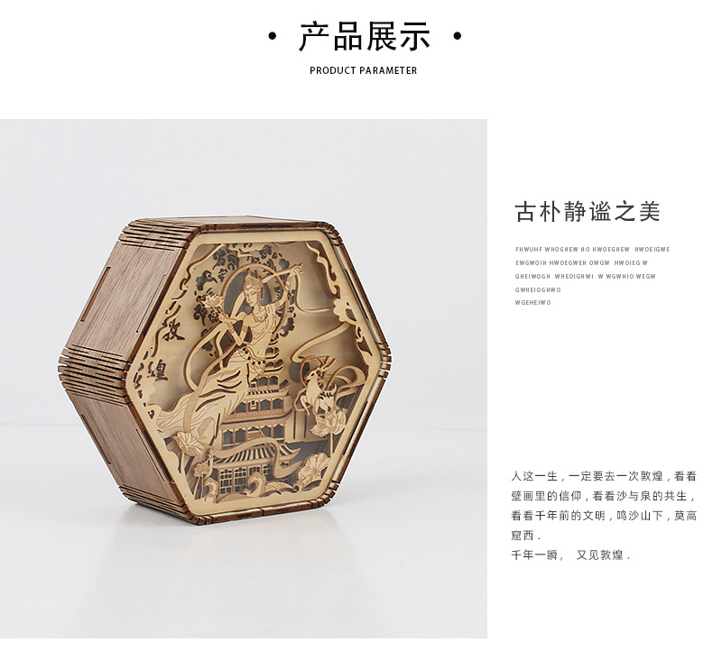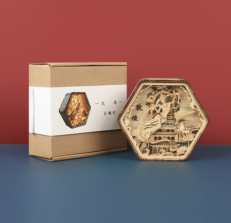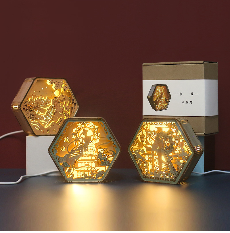 둔황 나무 조각 램프 창조적 인 선물 복고풍 창조적 인 선물 침대 옆 3D 야간 조명 장식 장식품 테이블 램프 종이 조각 램프스토어 가기