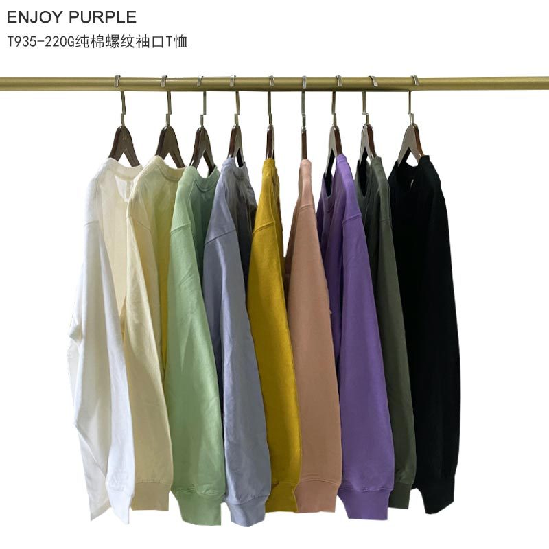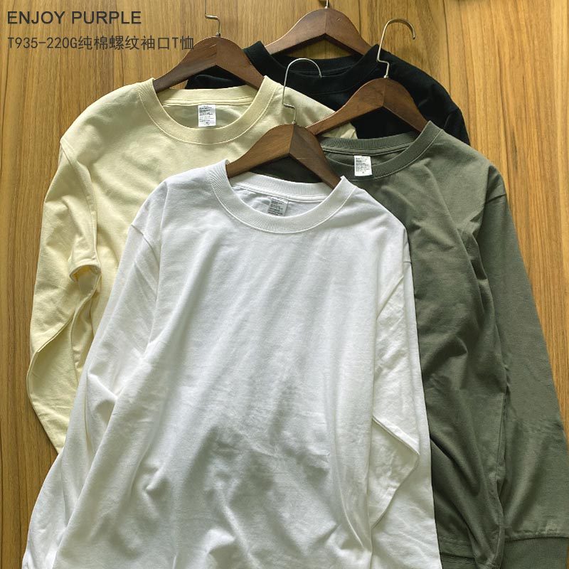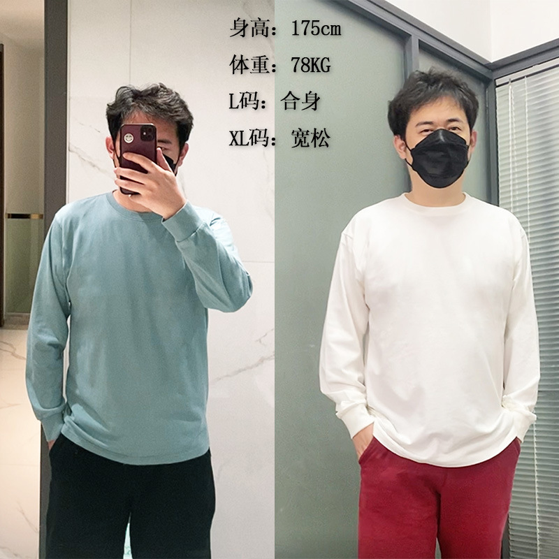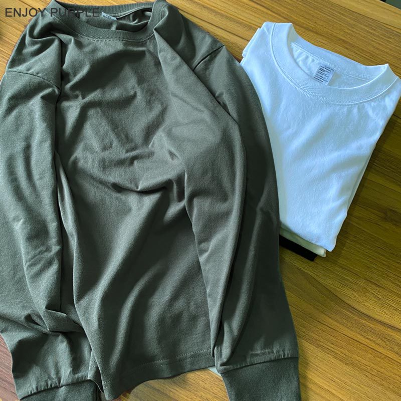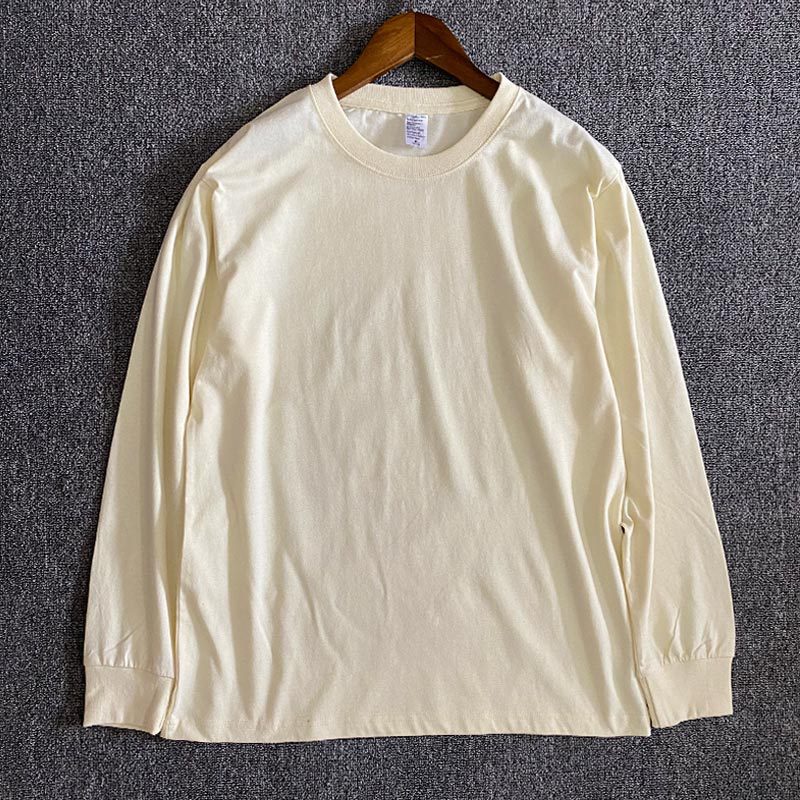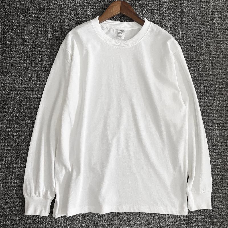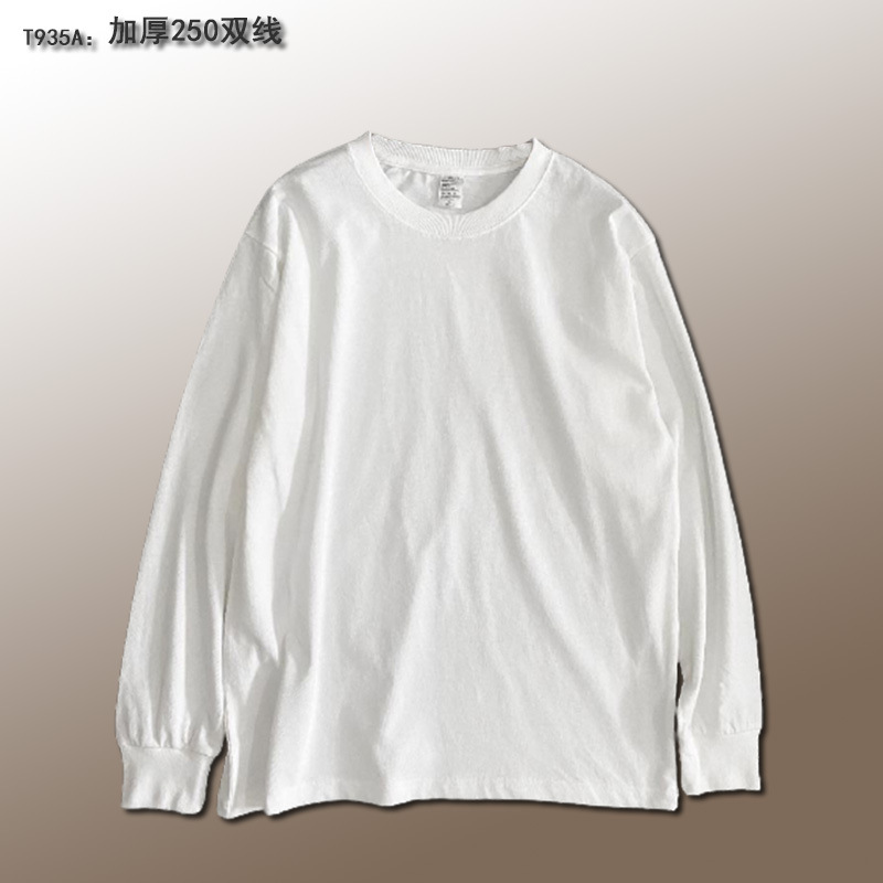 935 화이트 긴팔 티셔츠 남성용 봄 라운드 넥 루즈한 아메리칸 스타일 퓨어 코튼 탑 트렌디 솔리드 컬러 하이 스트리트 씬 베이스 셔츠스토어 가기