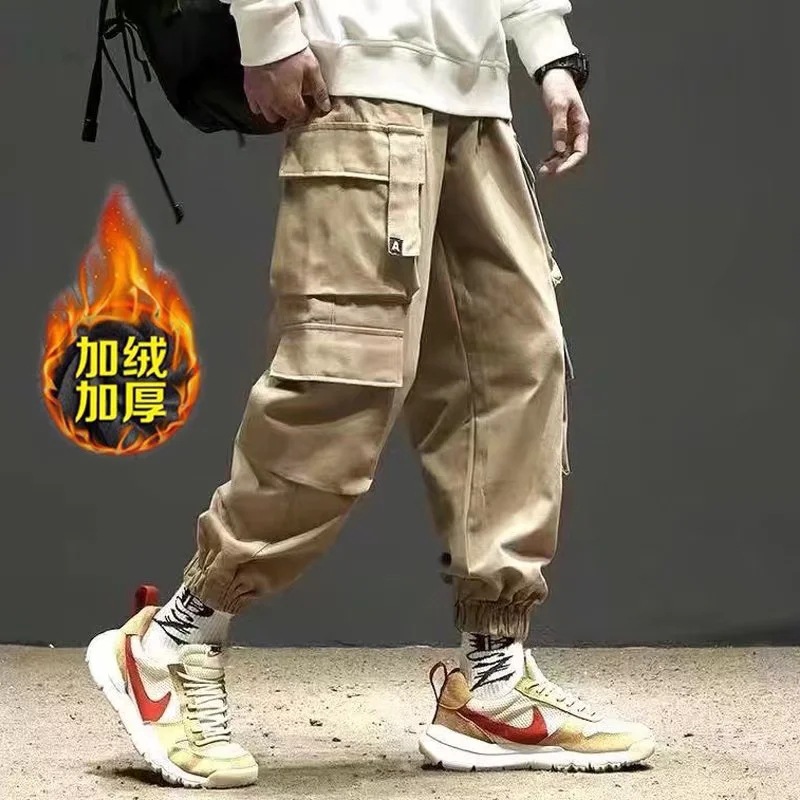 카고 바지 남성 바지 느슨한 트렌디 한 스포츠 바지 뚱뚱한 레이어드 플러스 사이즈 캐주얼 바지 남성용 유행 브랜드 발목 길이 바지