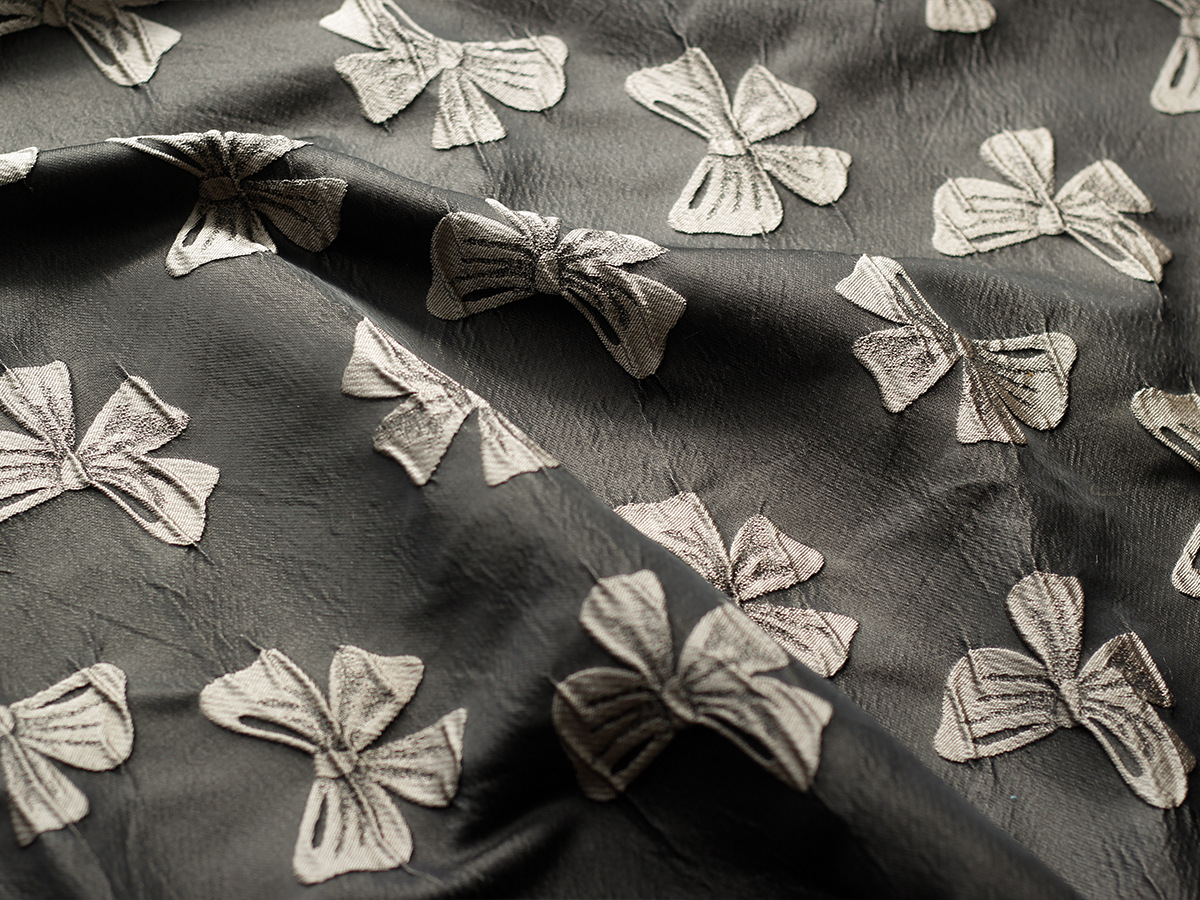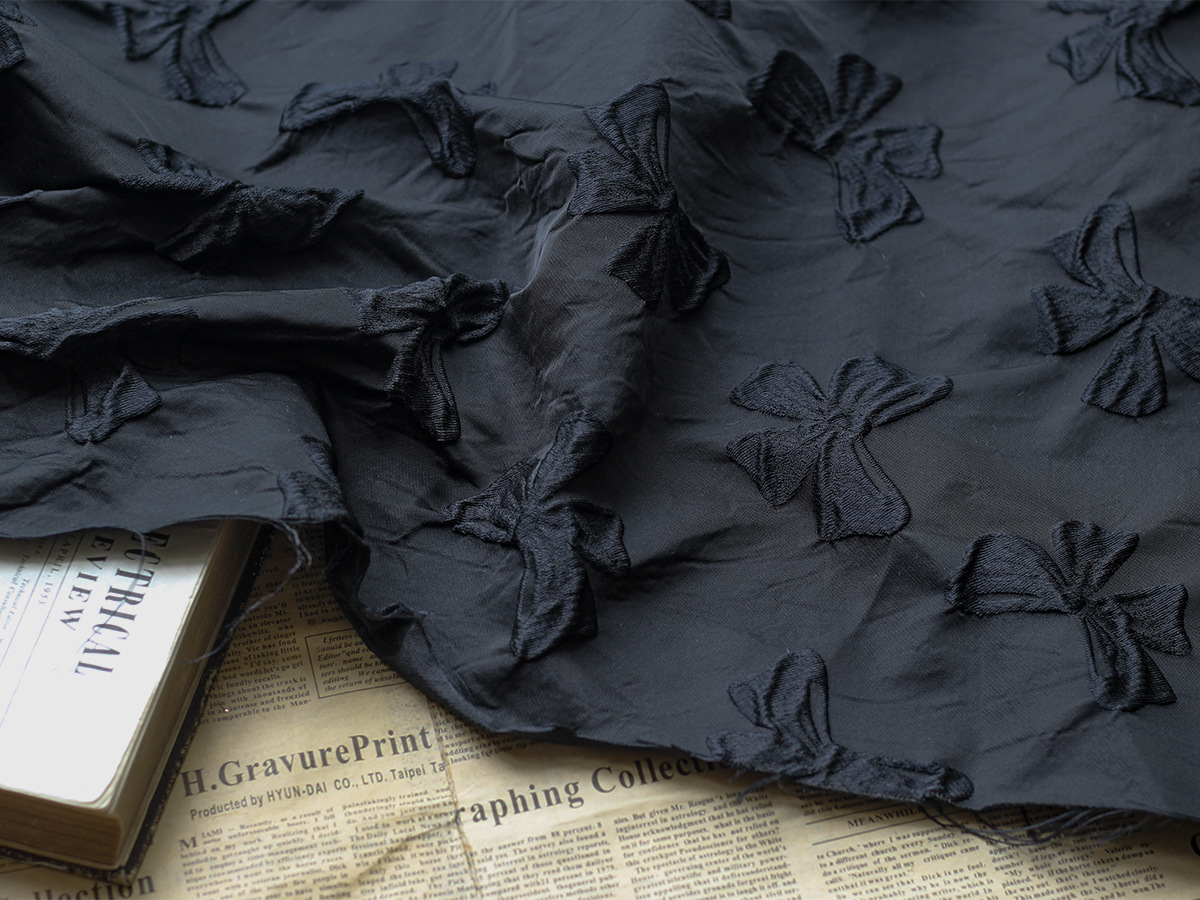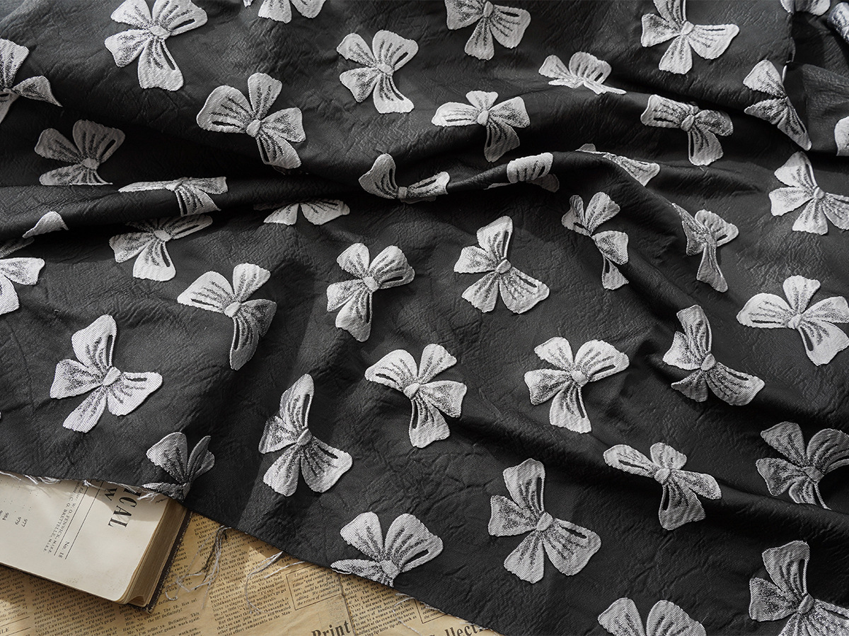 원사 염색 엠보싱 블랙 보우 자카드 원단 뻣뻣한 폴리 에스테르 자카드 가방 원피스 가을과 겨울 원단스토어 가기