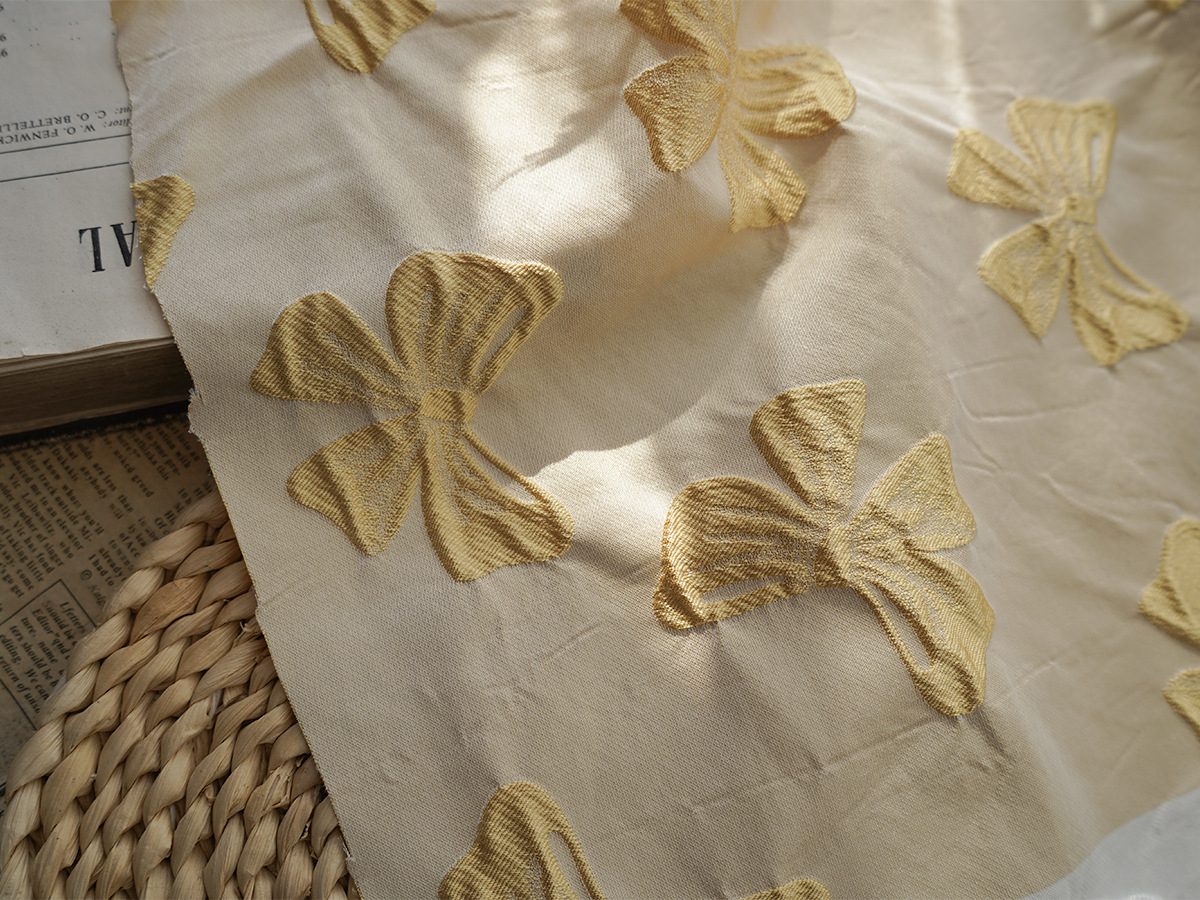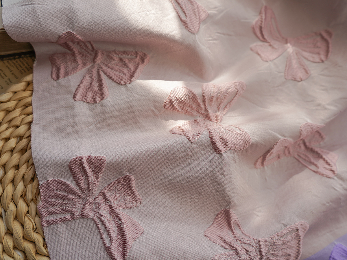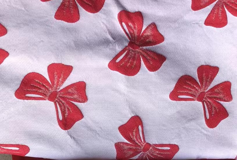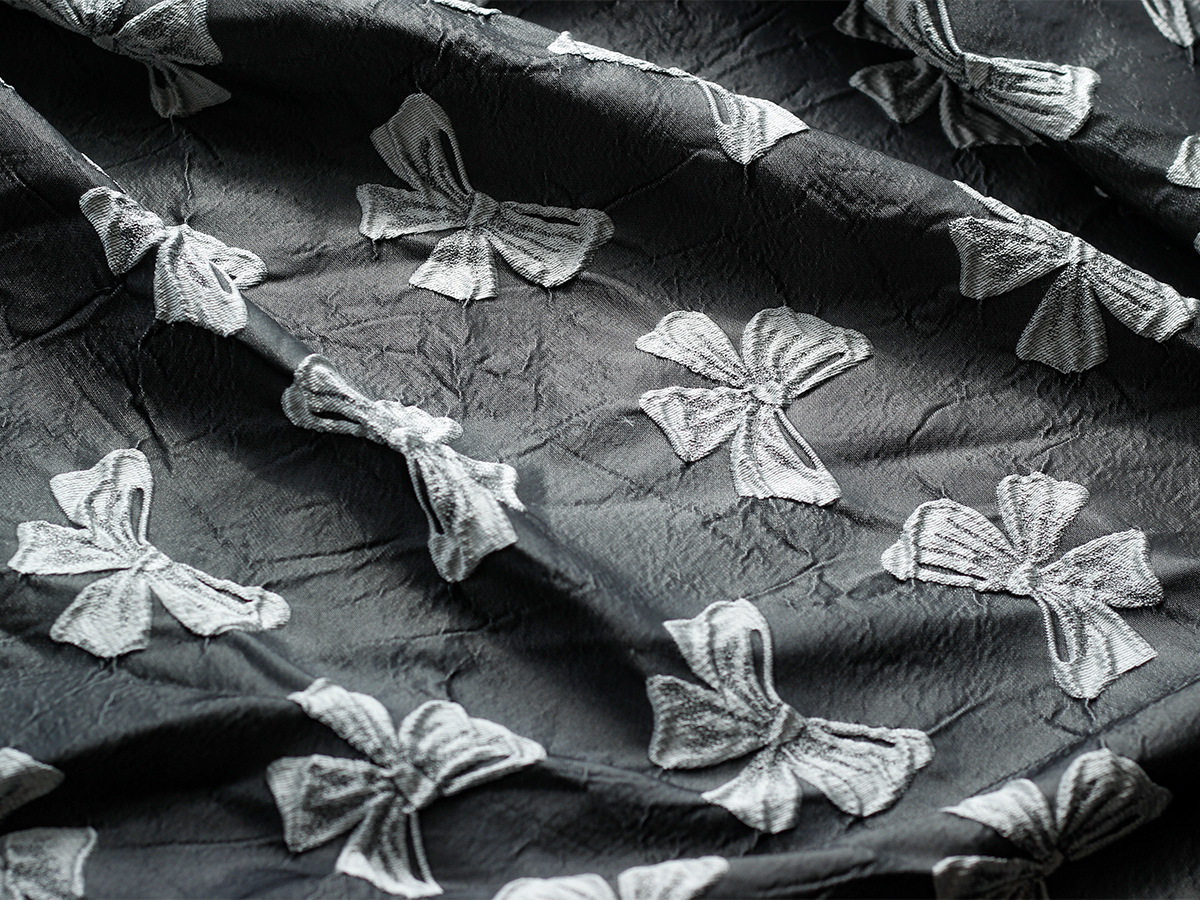 원사 염색 엠보싱 블랙 보우 자카드 원단 뻣뻣한 폴리 에스테르 자카드 가방 원피스 가을과 겨울 원단스토어 가기