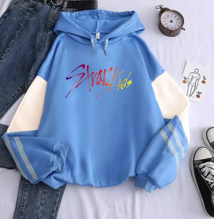스트레이 키즈 기모 후드 후드 후드 후드 후드 스트라이프 스티칭 컬러 후드 후드 후드