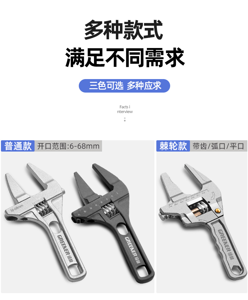 초록의 숲 욕실 렌치 조정 가능한 짧은 손잡이 대형 오프닝 다기능 수도꼭지 배관 설치 좁은 렌치