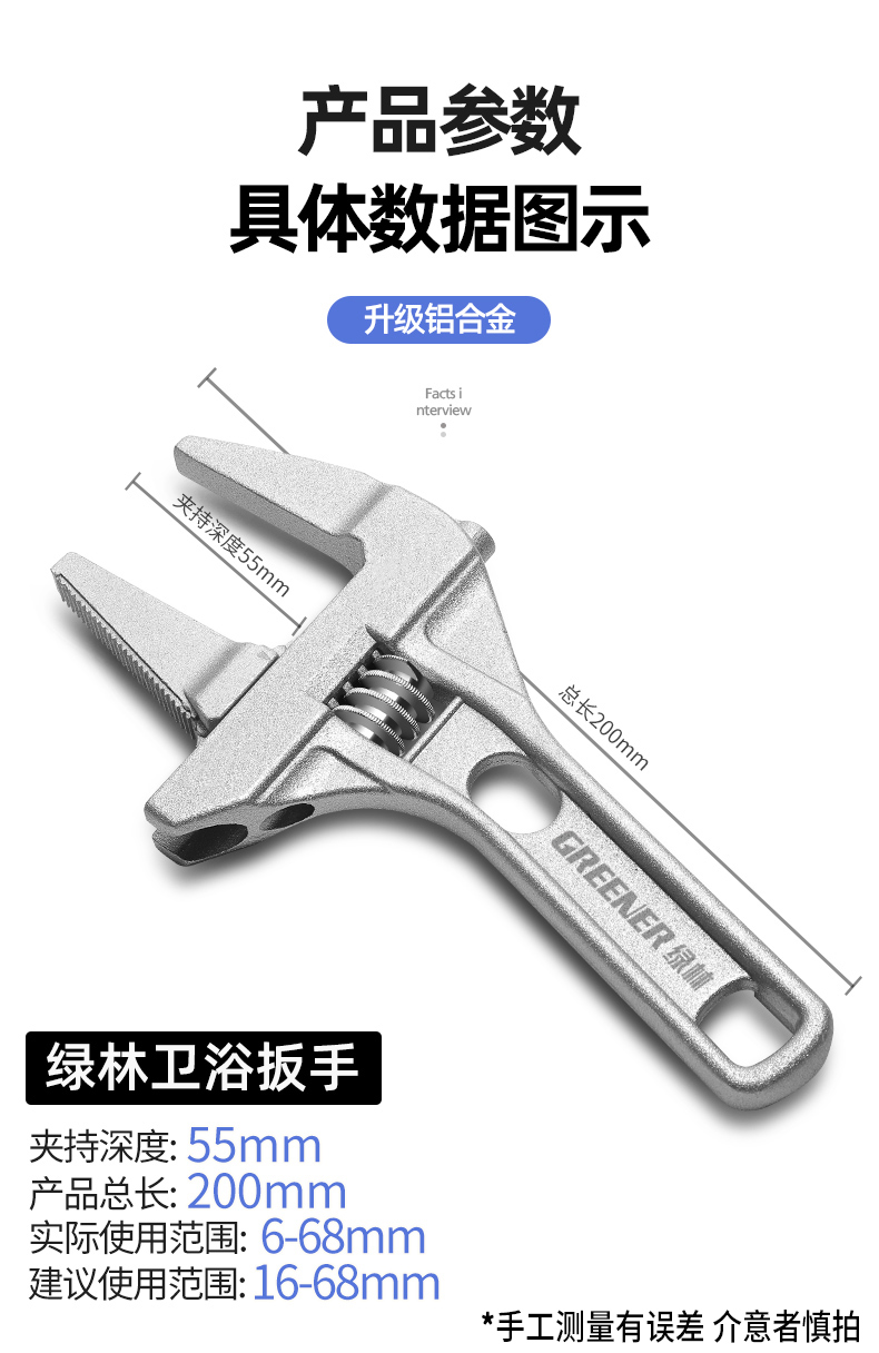 초록의 숲 욕실 렌치 조정 가능한 짧은 손잡이 대형 오프닝 다기능 수도꼭지 배관 설치 좁은 렌치스토어 가기