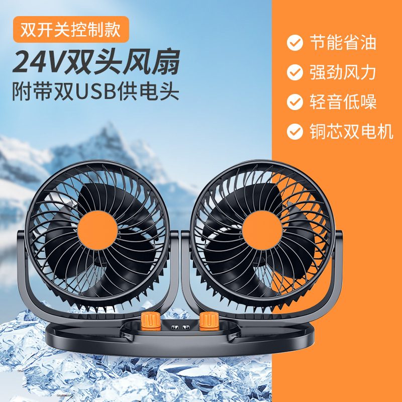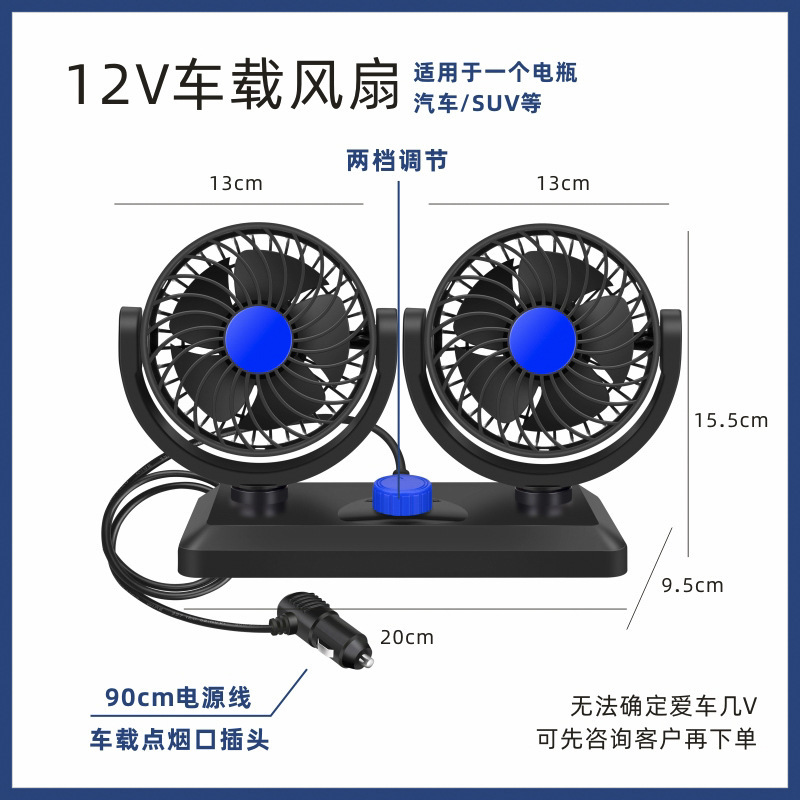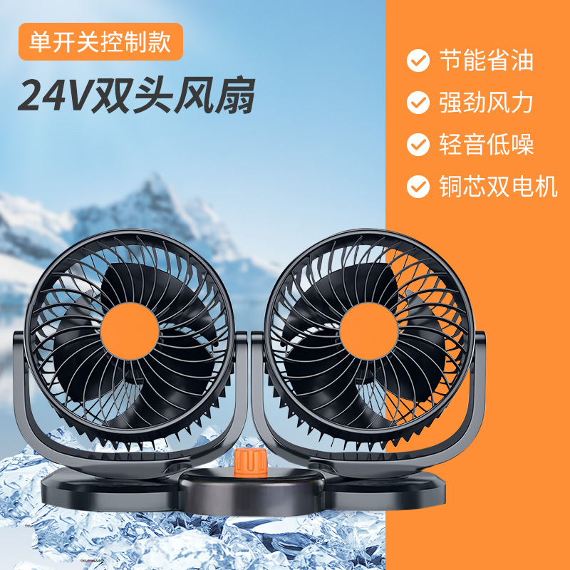 | 【整箱重量】:N.W21kg/G.W:22kg | 【产品特点】:多角度可调节,风力强劲,12V适合小轿车使用,24V适合大货车使用。360°可旋转、强劲自然风 |