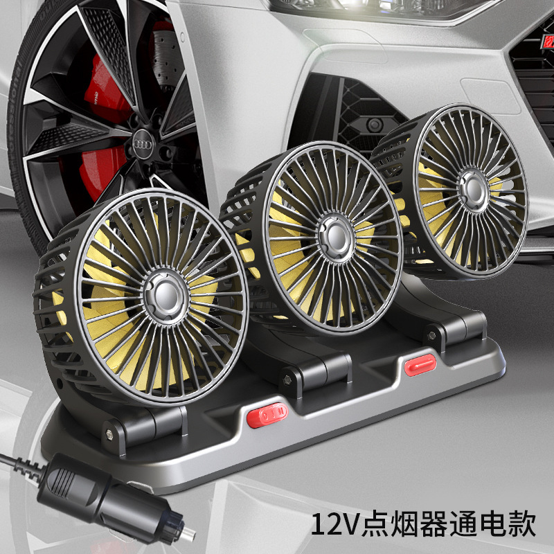 | 【产品名称】:车载三头风扇 | 【产品名称】:F30双头车载风扇 |