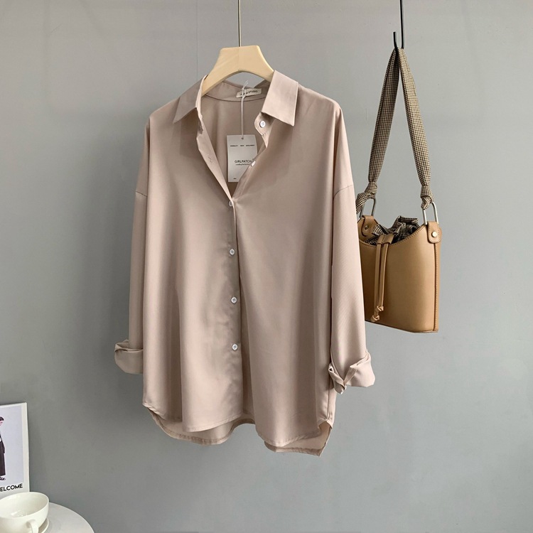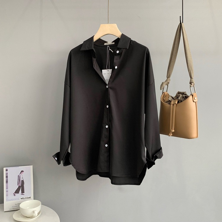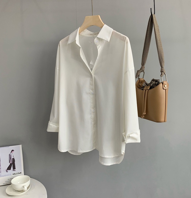 구리 암모니아 실크 화이트 셔츠 여성의 디자인 감각 틈새 얇은 느슨한 드레이프 쉬폰 자외선 차단제 셔츠 긴 소매 탑 봄