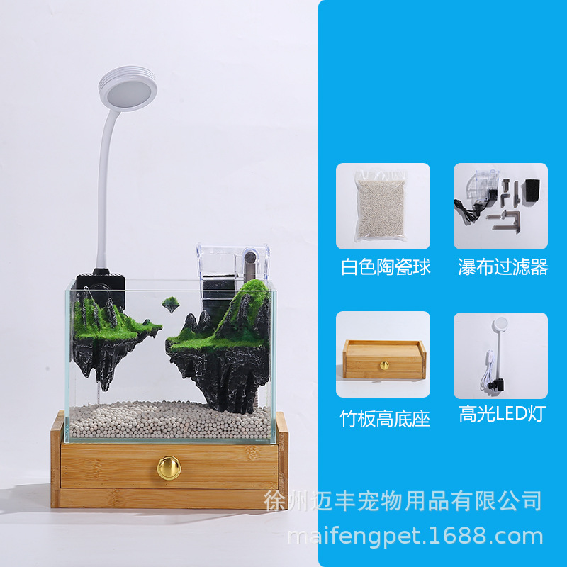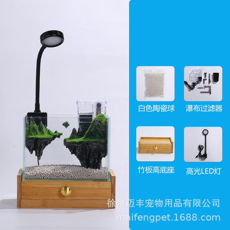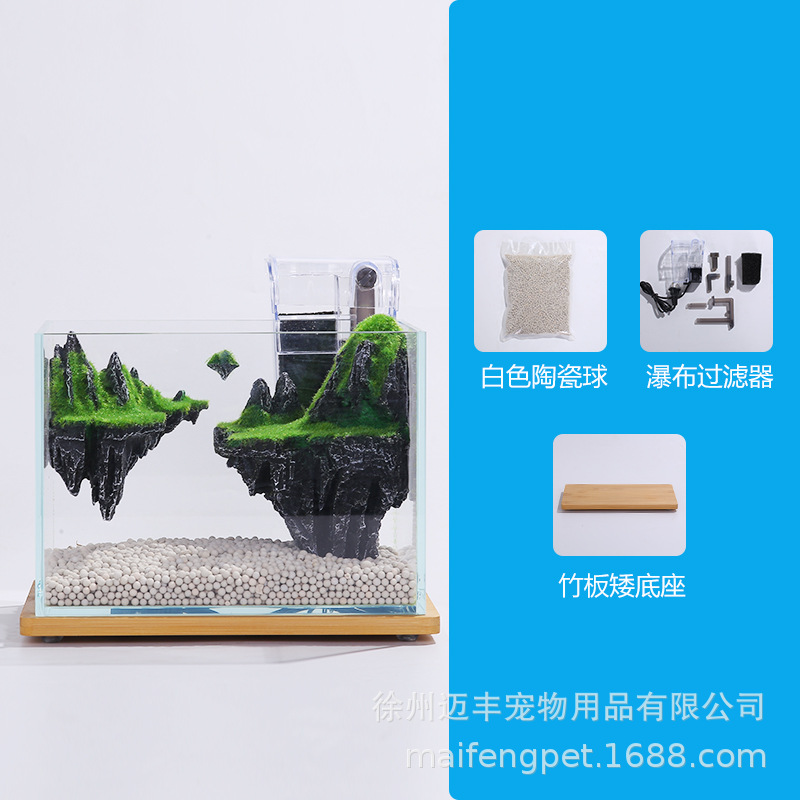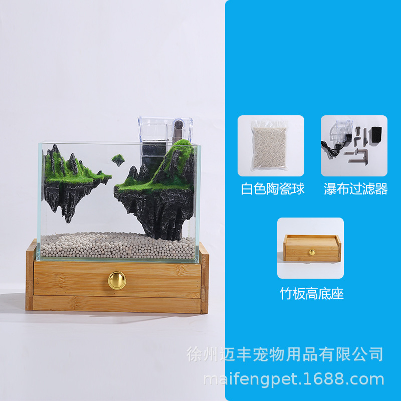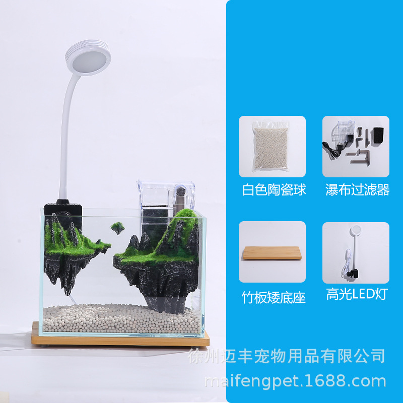 슈퍼 화이트 어항 작은 거실 데스크탑 크리 에이 티브 미니 수족관 미니어처 풍경 생태 어항 스카이 시티스토어 가기