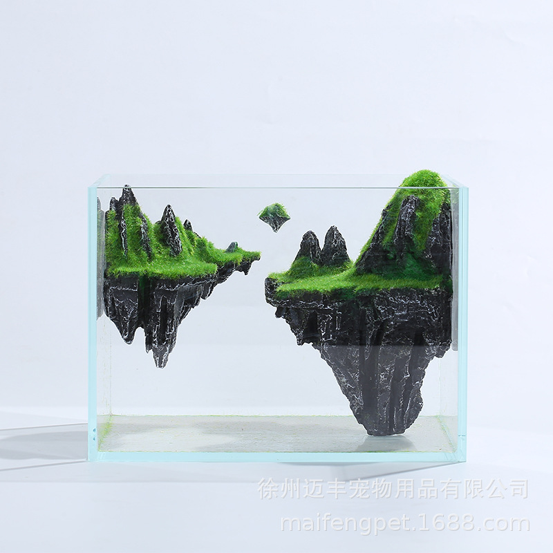 슈퍼 화이트 어항 작은 거실 데스크탑 크리 에이 티브 미니 수족관 미니어처 풍경 생태 어항 스카이 시티
