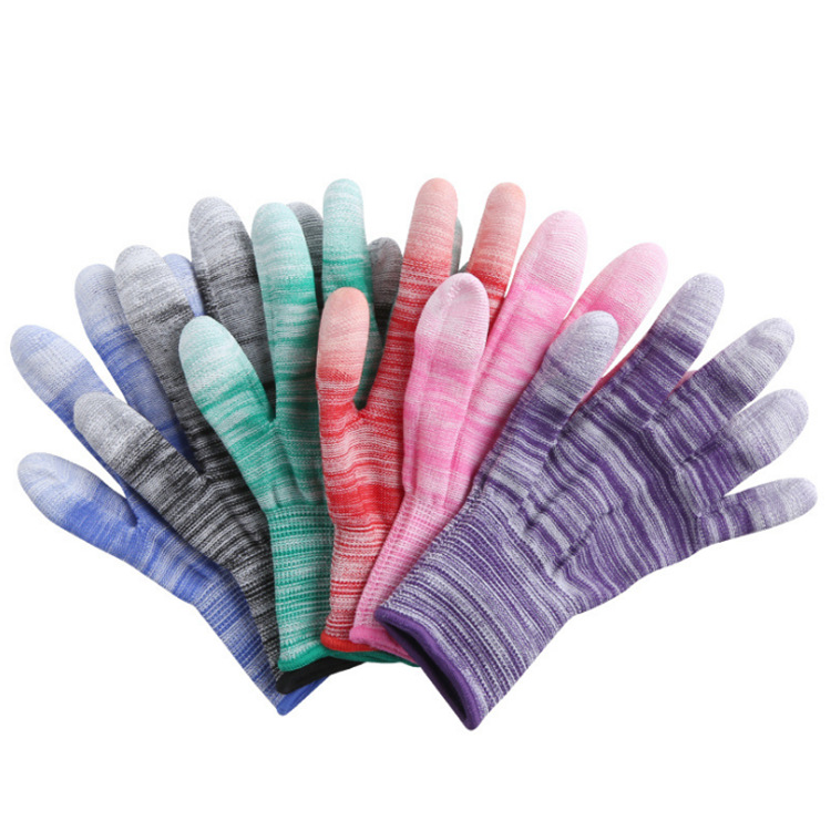 나일론 스트라이프 PU 코팅 정전기 방지 미끄럼 방지 전자 공장 먼지 없는 작업장 노동 보호 코팅 보호 통기성 얇은 장갑스토어 가기