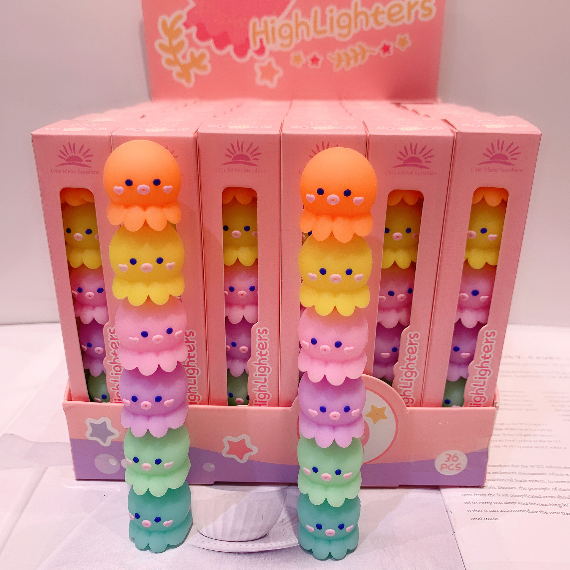 한국식 중형 문어 모양의 형광펜 실리콘 문어 귀여운 문구 키 마크 낙서 펜 저널 펜스토어 가기