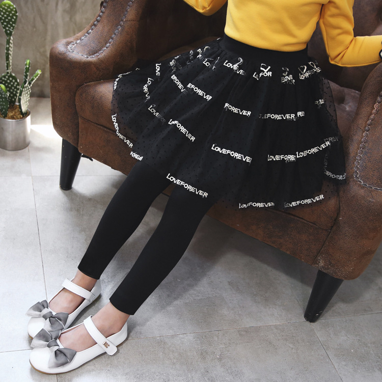 여아 바지 2023 가을 새로운 한국 스타일 가짜 투피스 면 퀼로트 메쉬 레깅스 어린이 바지스토어 가기