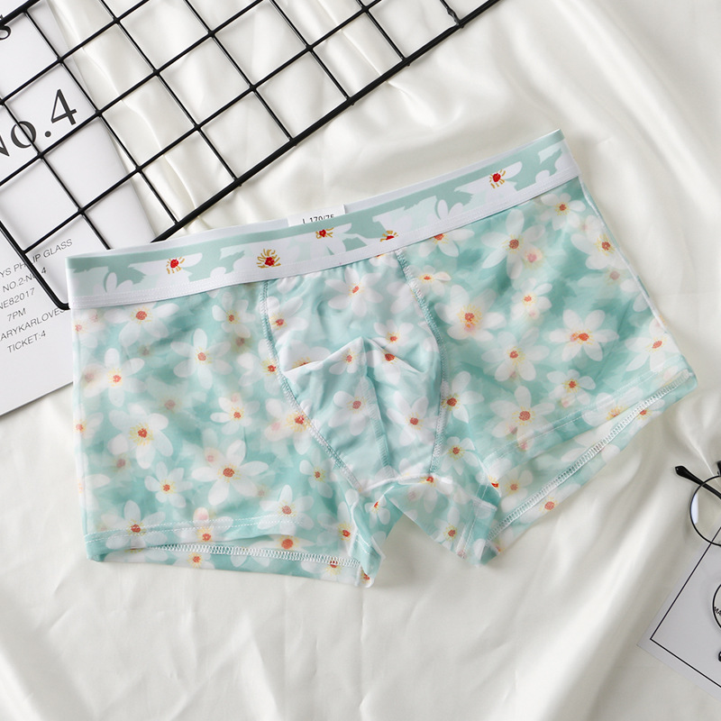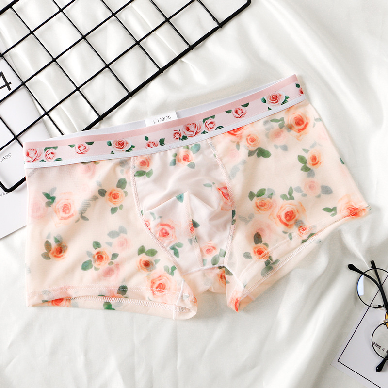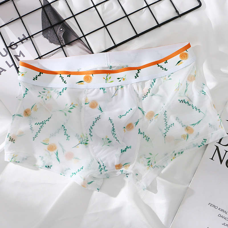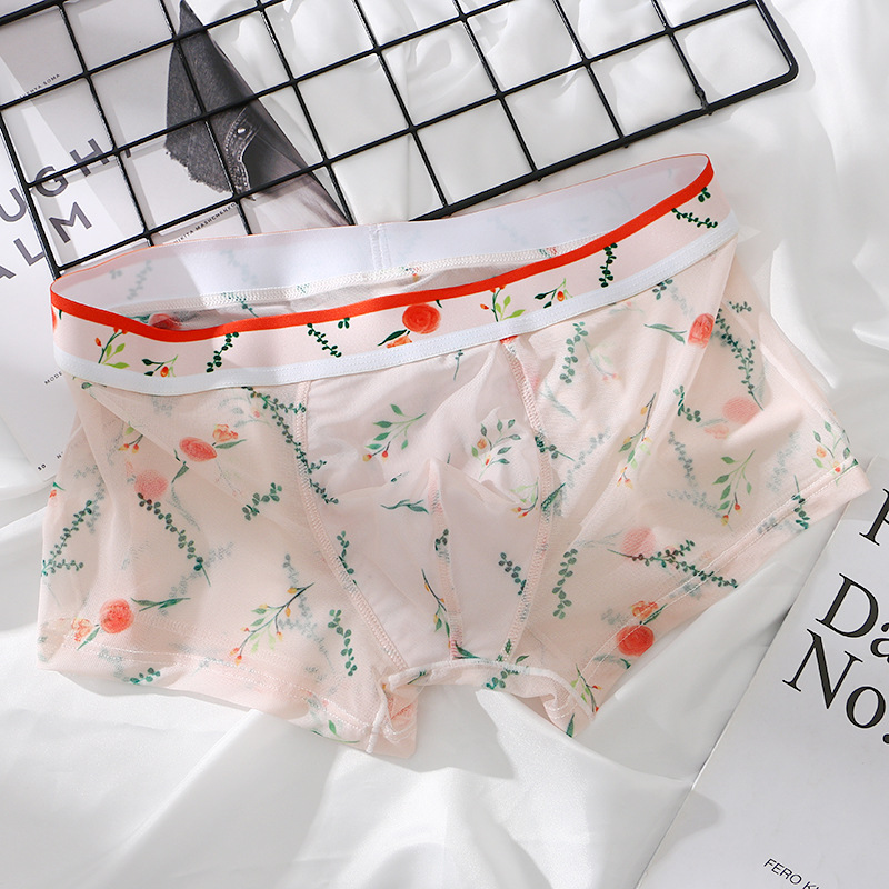 새로운 스타일 메쉬 초박형 투명 남성 속옷 섹시한 통기성 복서 남성용 여름 인쇄 복서 반바지스토어 가기