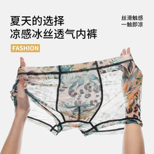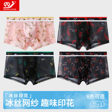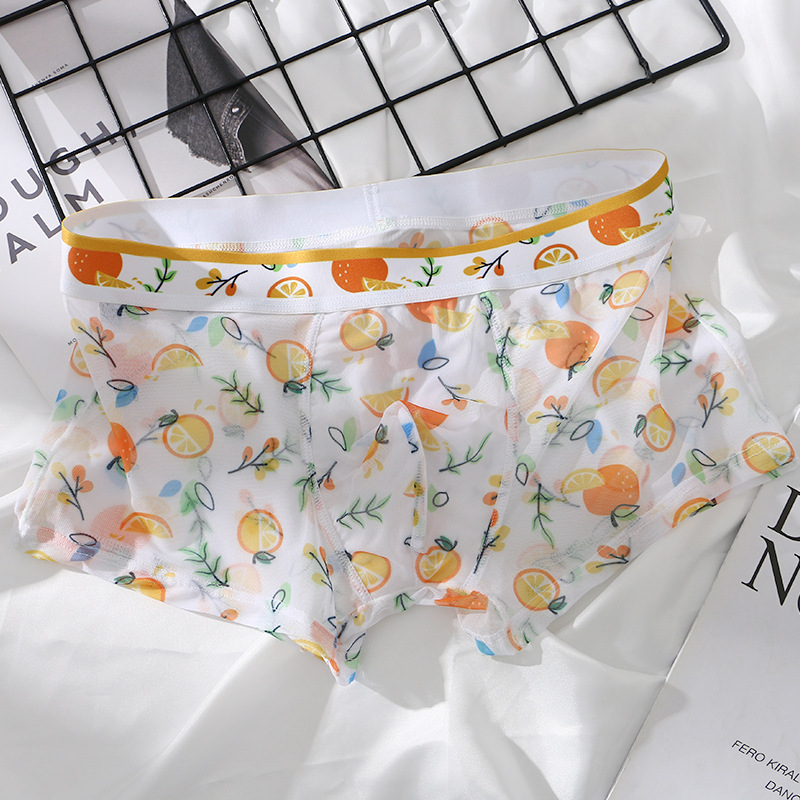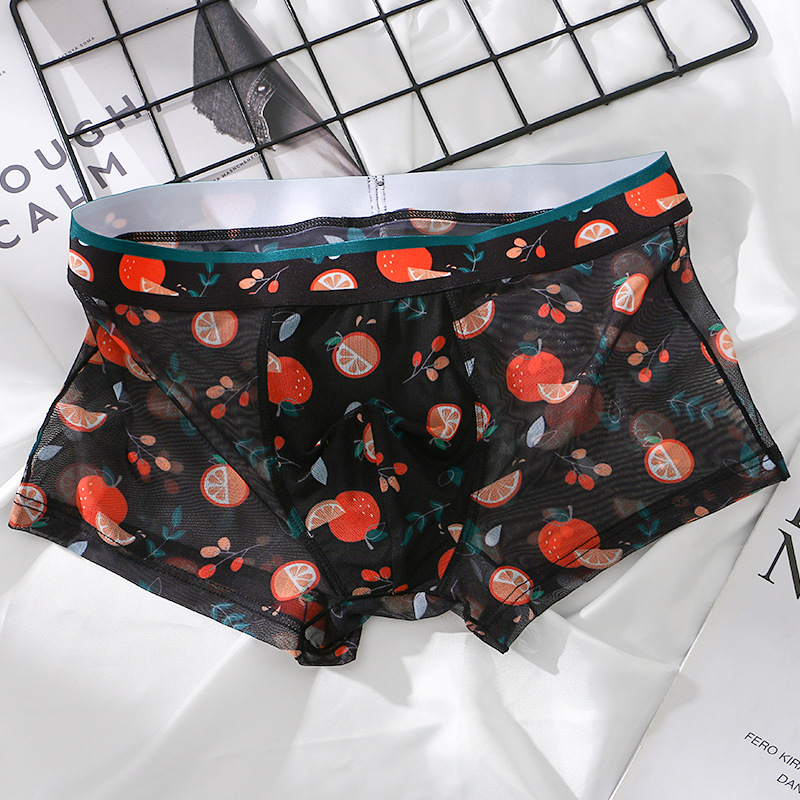 새로운 스타일 메쉬 초박형 투명 남성 속옷 섹시한 통기성 복서 남성용 여름 인쇄 복서 반바지