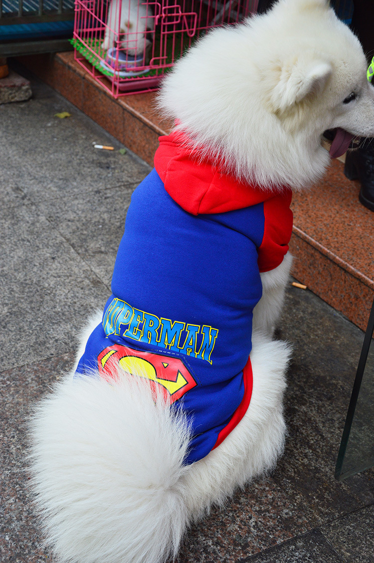 통관 가을과 겨울 대외 무역 아마존 개 고양이 애완 동물 운동복 슈퍼맨 배트맨 의상 골든 리트리버 사모 옷스토어 가기