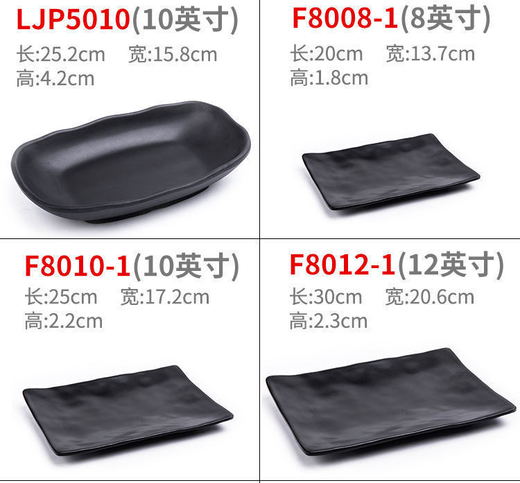 멜라민 식기 플라스틱 바베큐 접시 모방 도자기 검은 창조적 인 접시 레스토랑 요리 냄비 레스토랑 접시 상업 접시