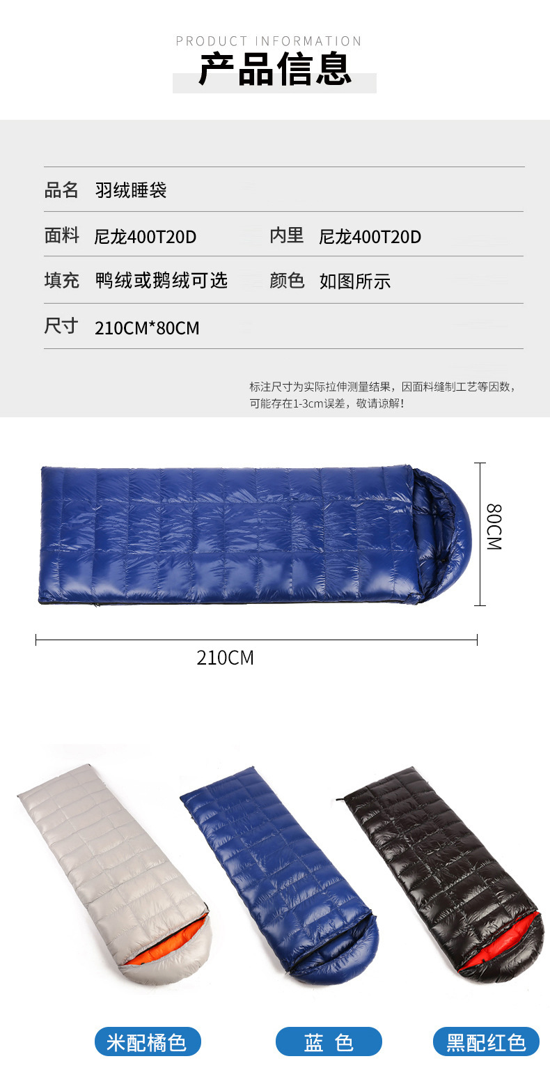 아래로 침낭 사계절 보편적 인 성인 야외 침낭 국경 부드럽고 편안한 편리한 캠핑 침낭 캠핑 도매