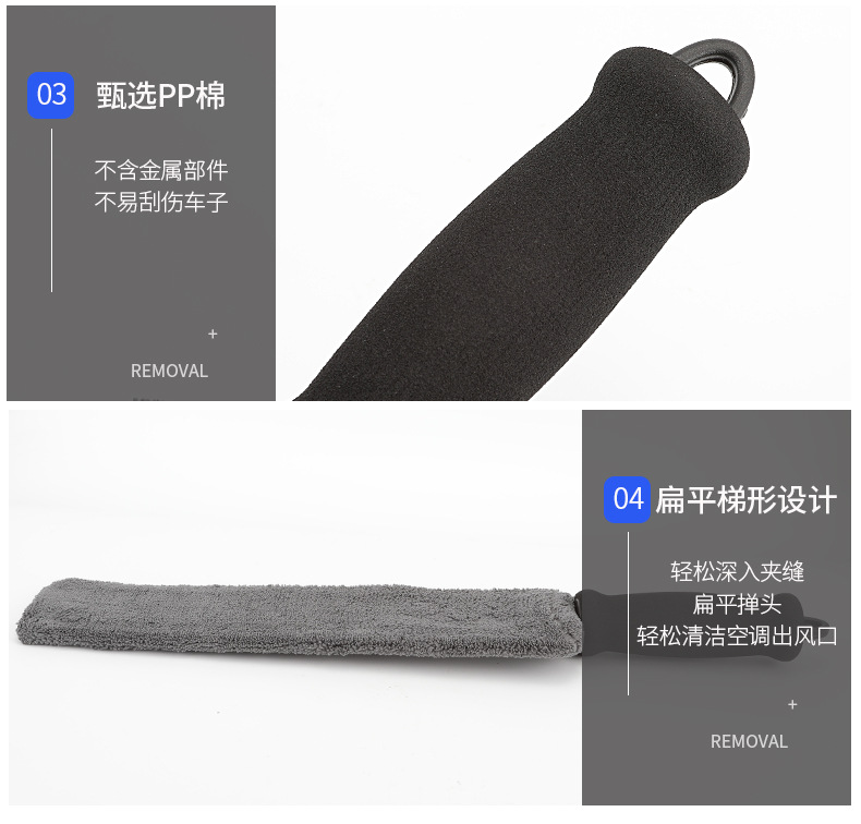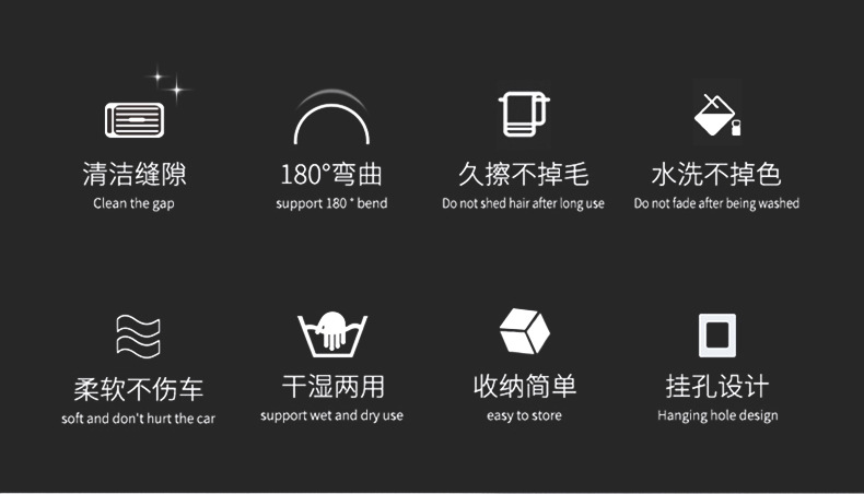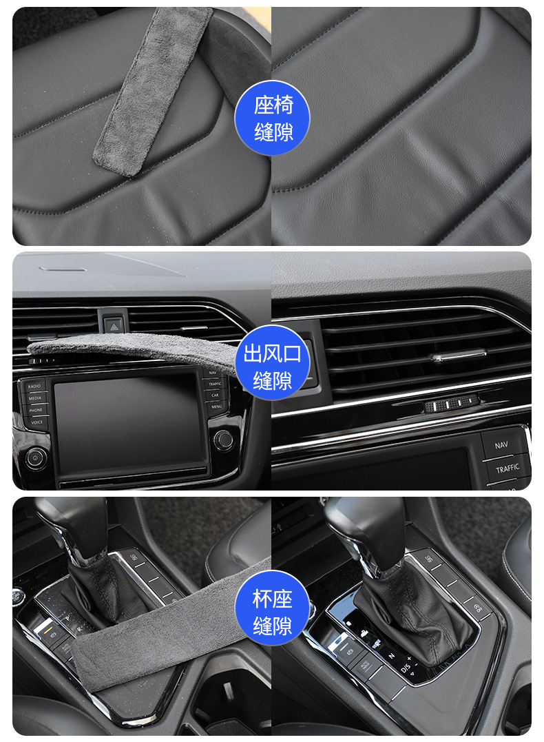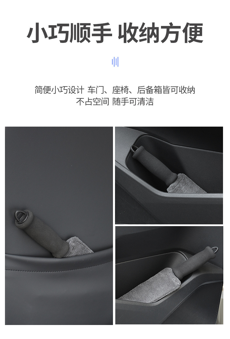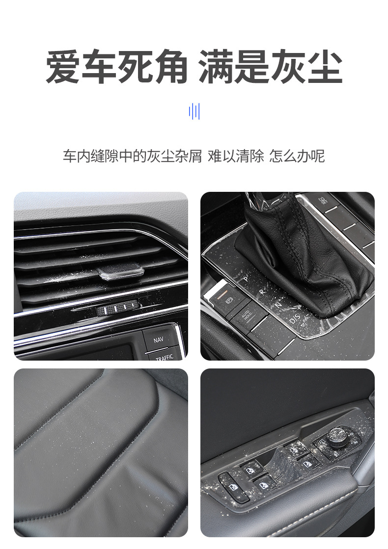 1、可擦拭汽车空调扇叶,车门储物格、中控台杯座、仪表台能容易吸灰的角落。
