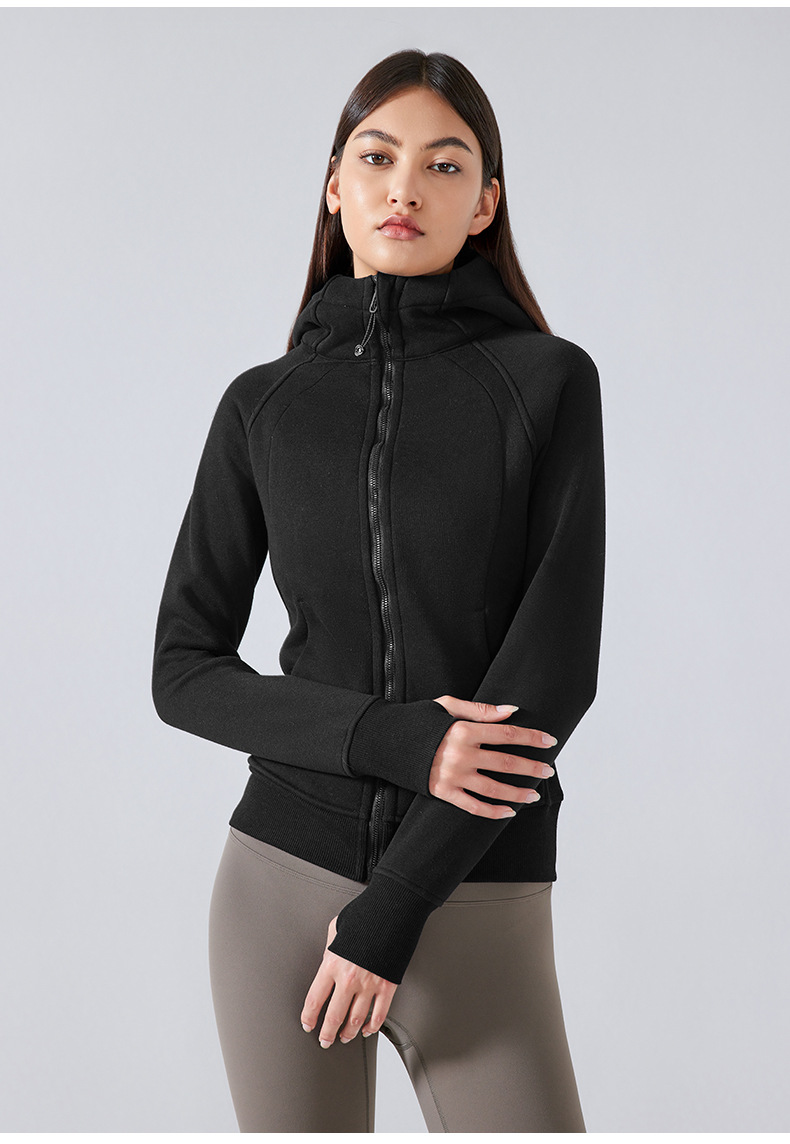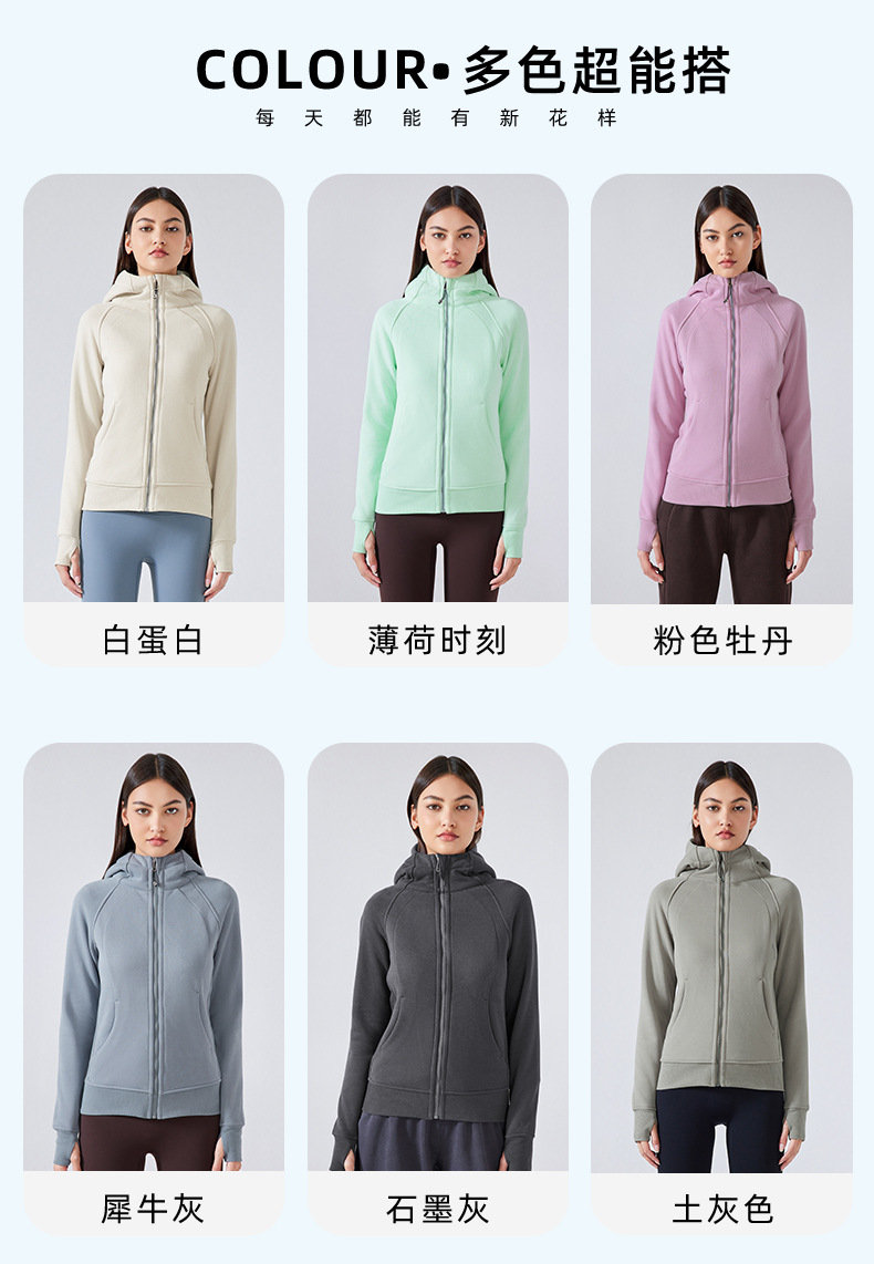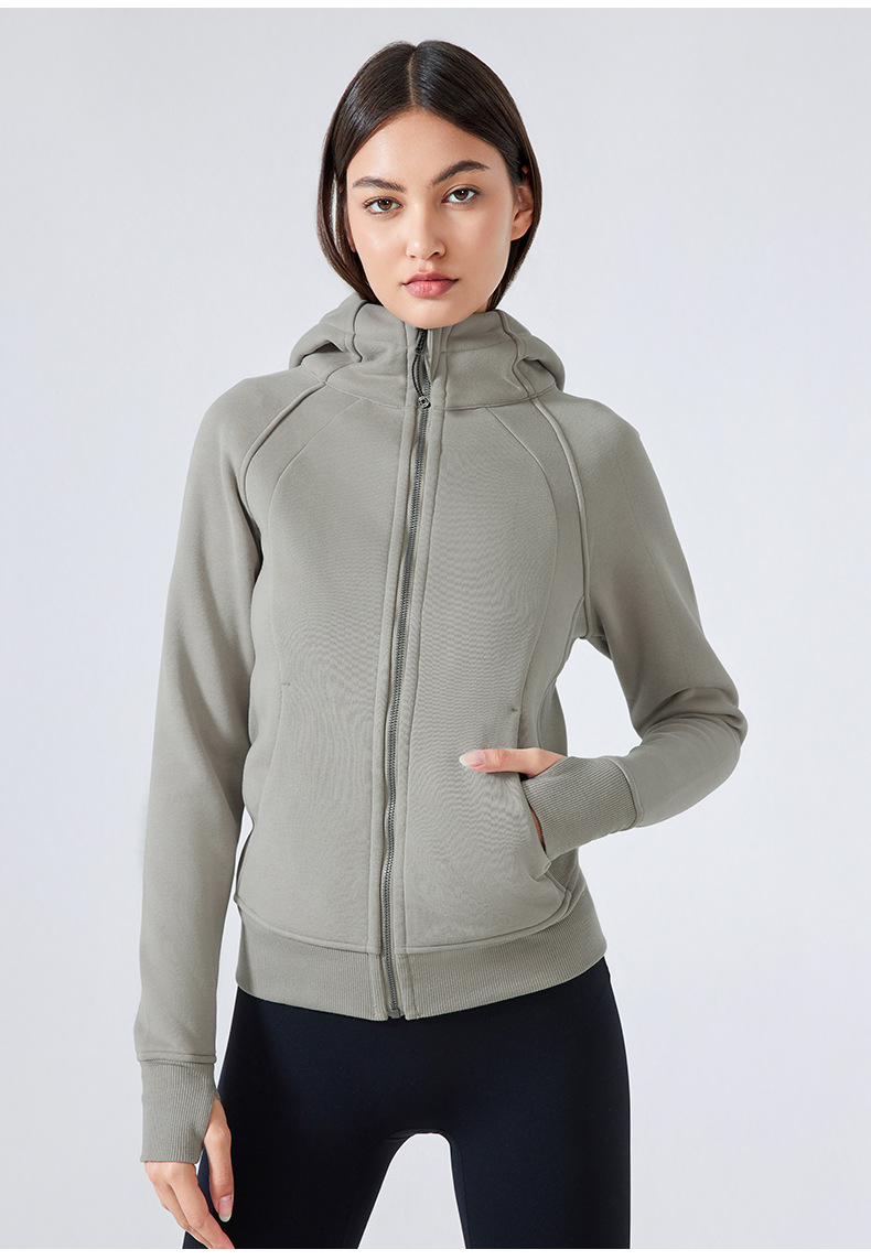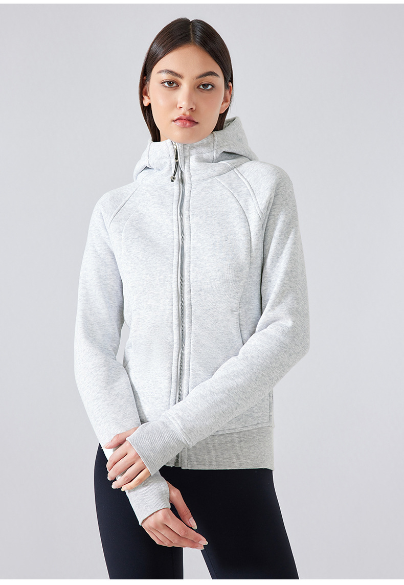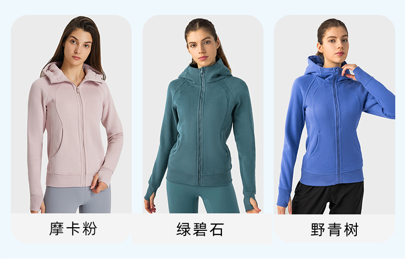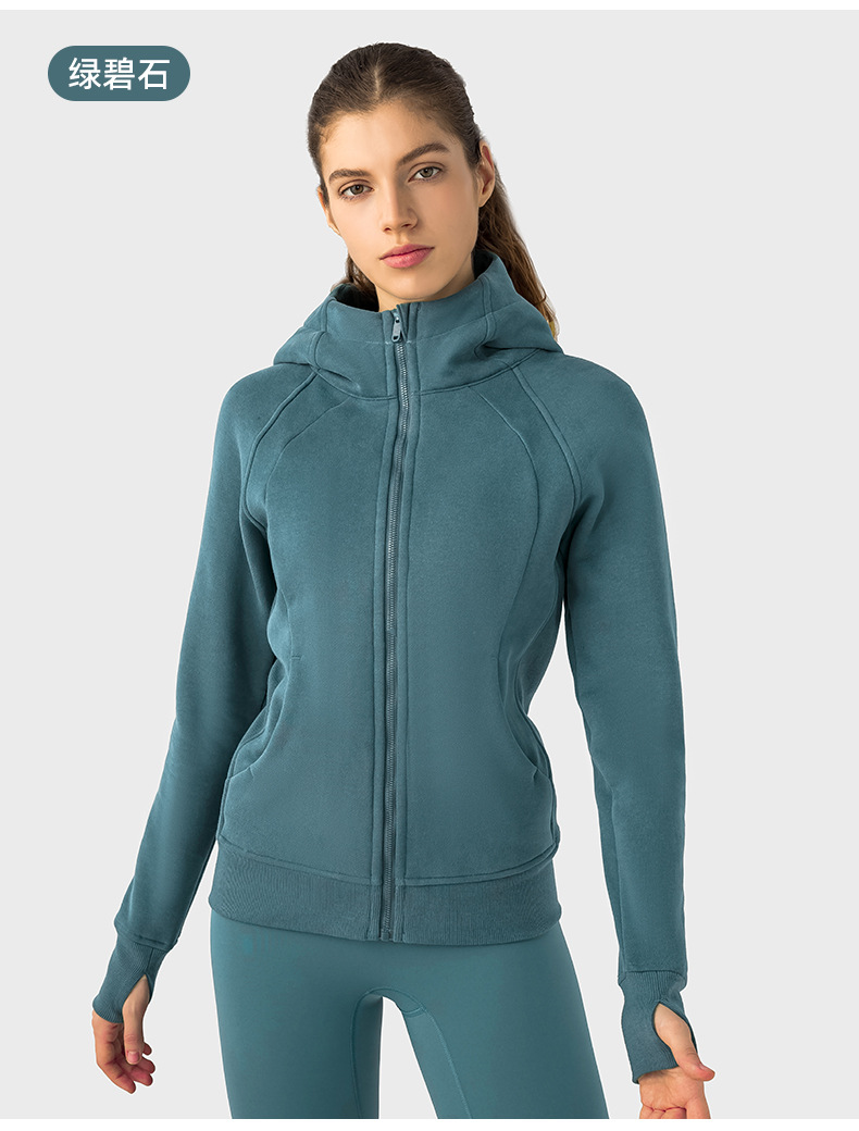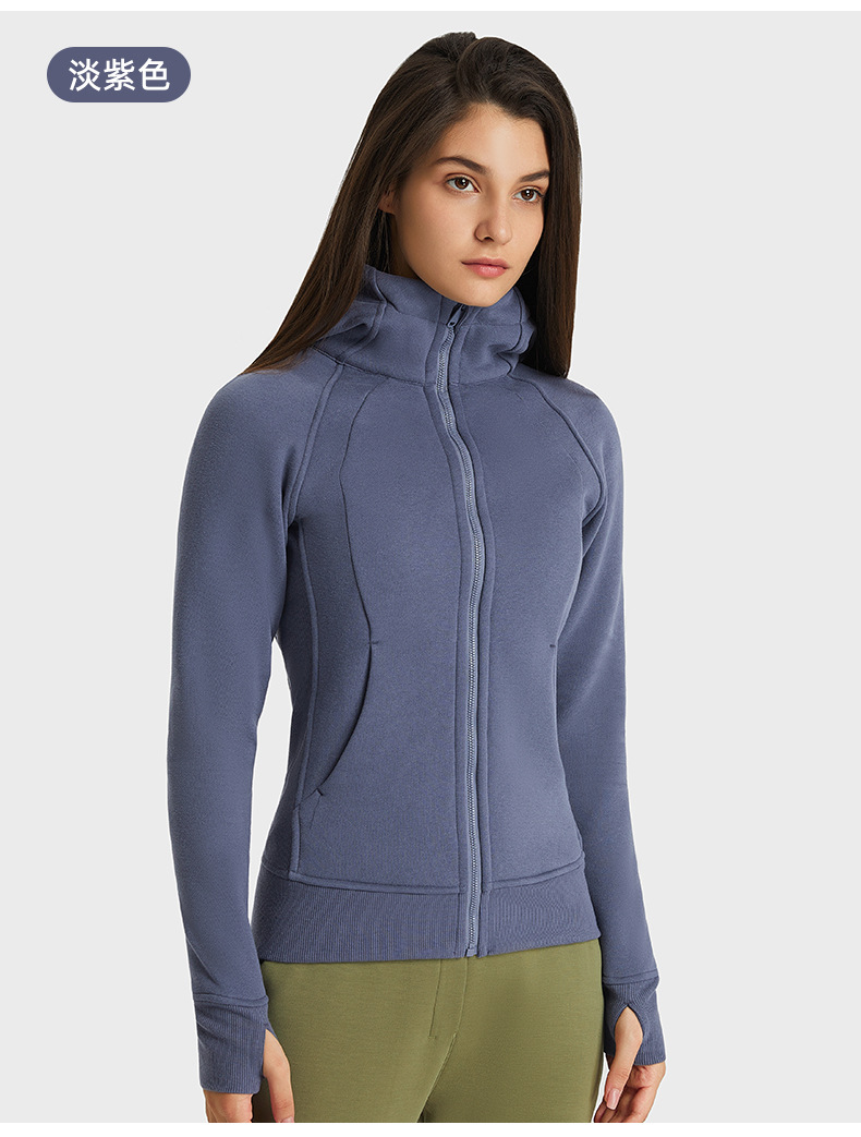 가을 겨울 후드 플리스 보온 스포츠 여성용 지퍼 가디건 요가복 슬림핏 피트니스 자켓 DJ028