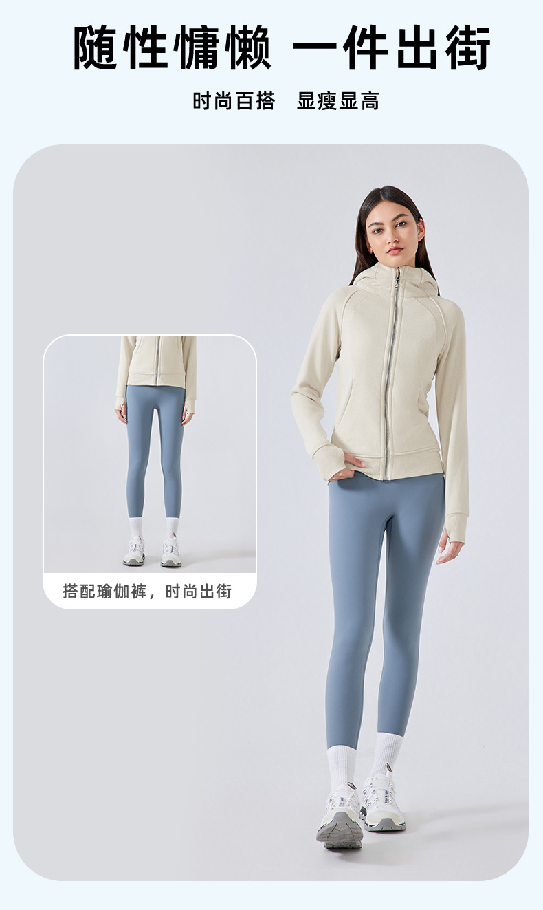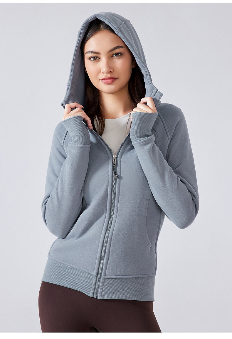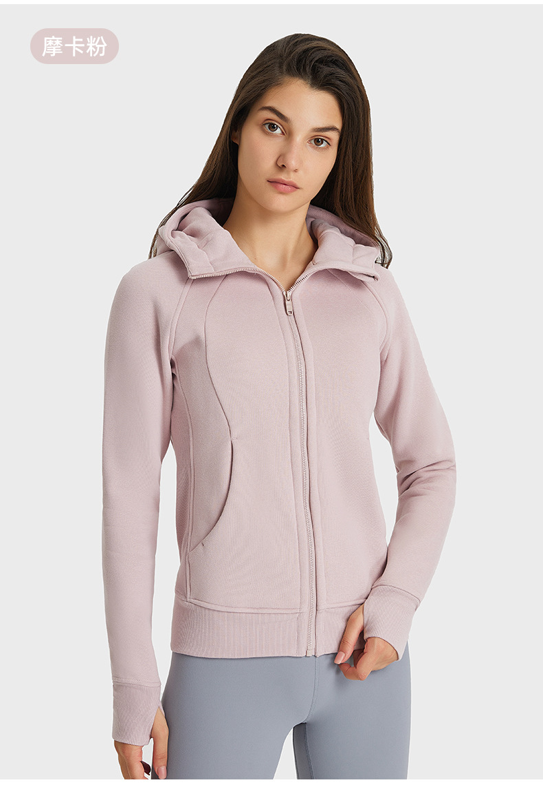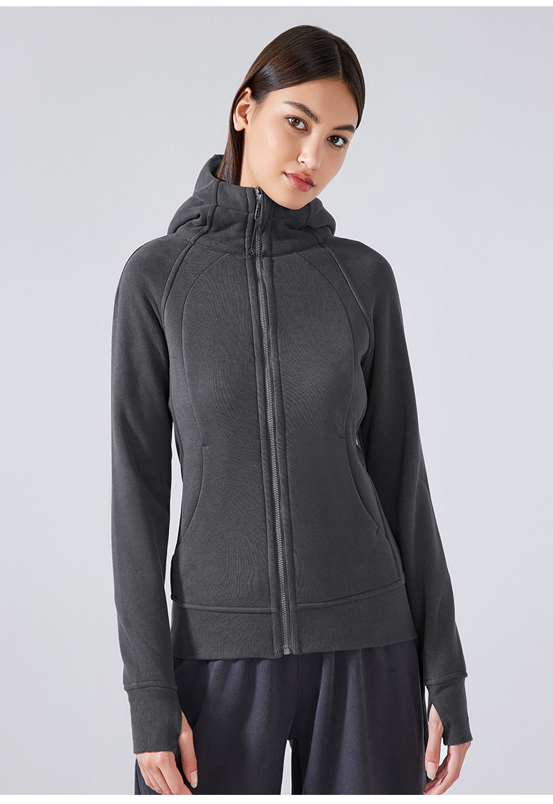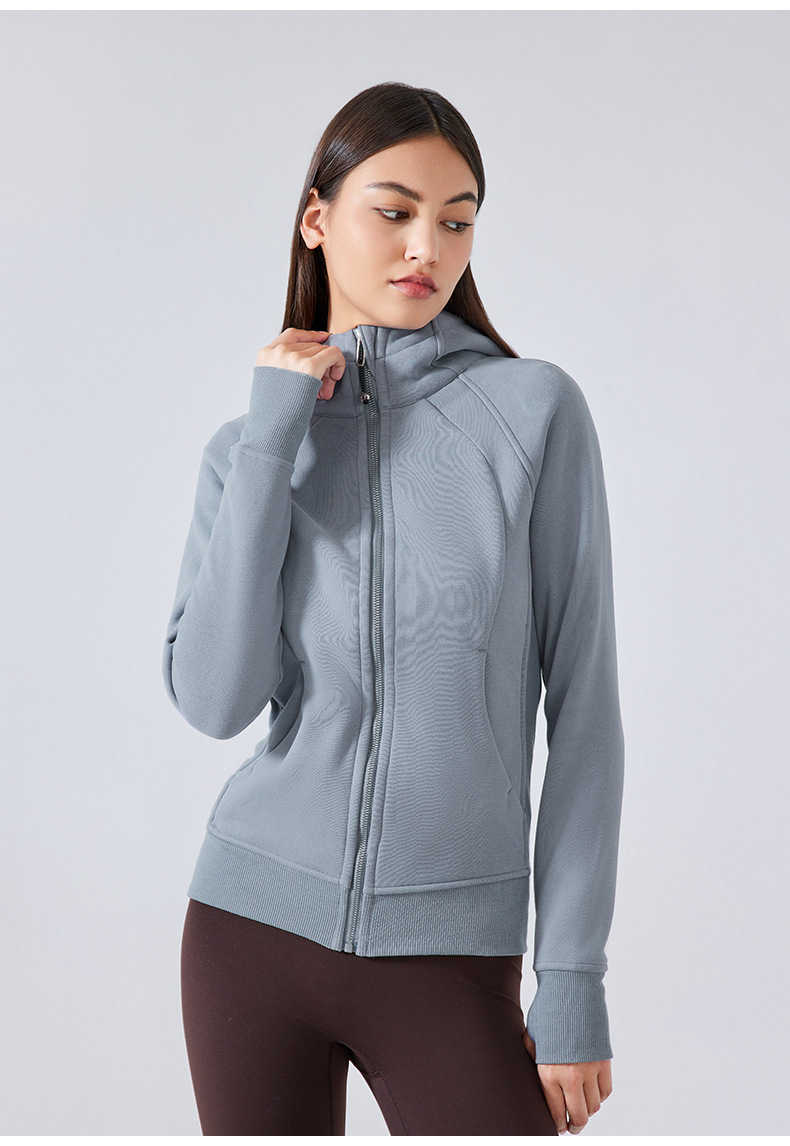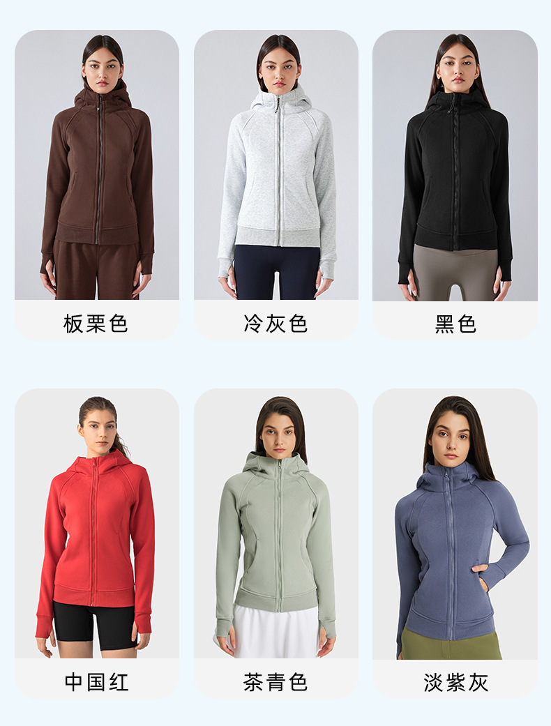 가을 겨울 후드 플리스 보온 스포츠 여성용 지퍼 가디건 요가복 슬림핏 피트니스 자켓 DJ028