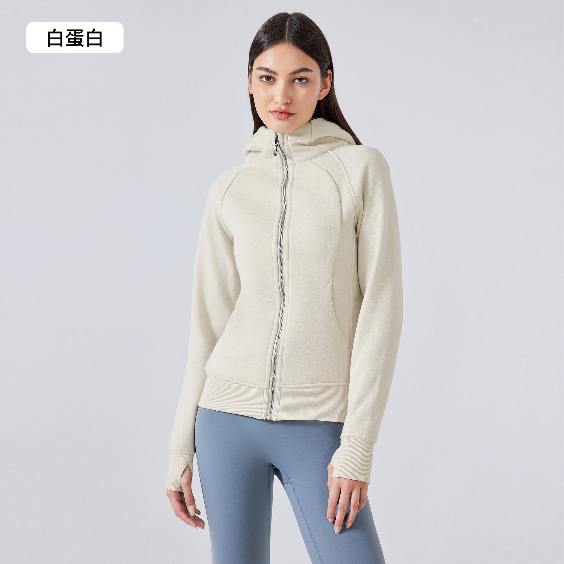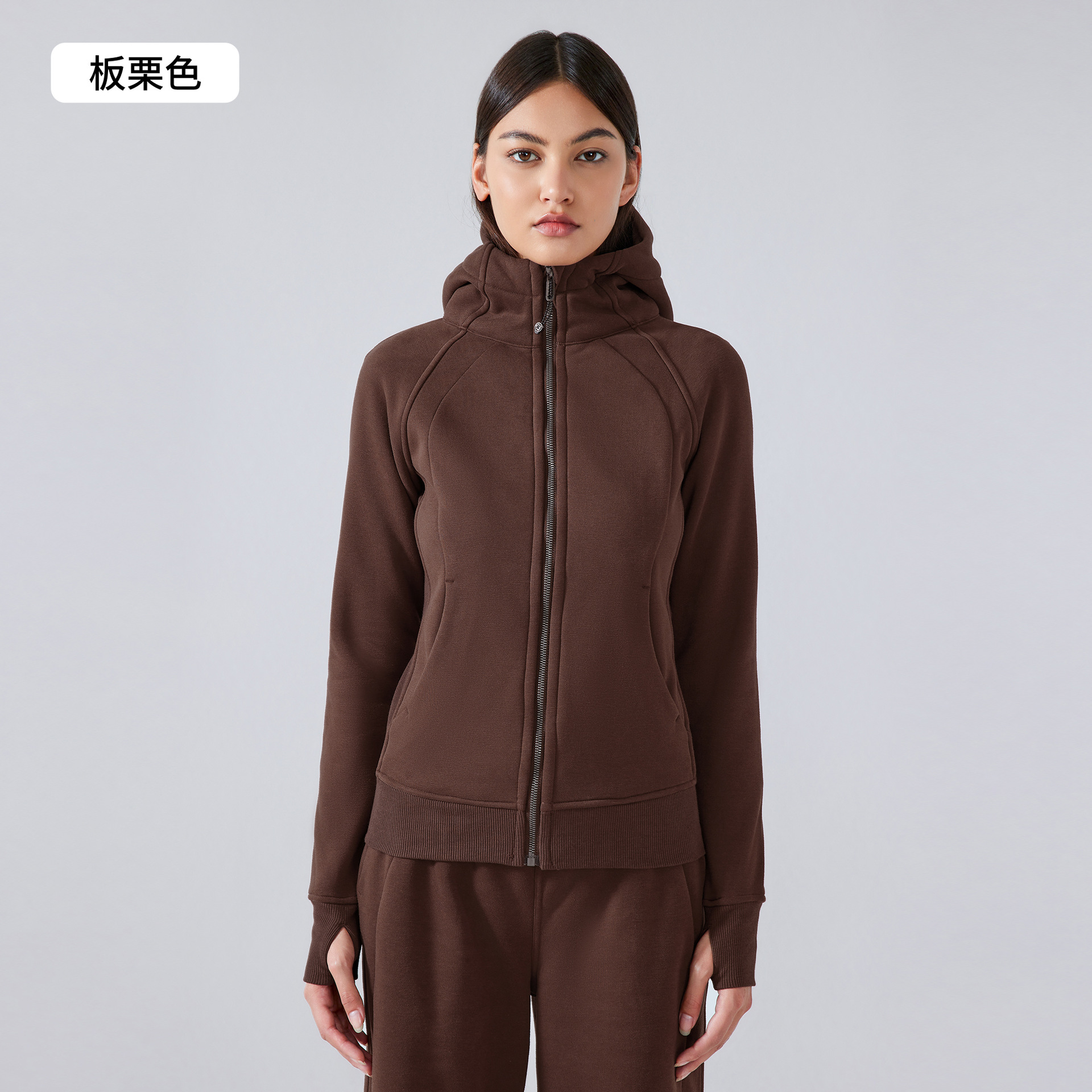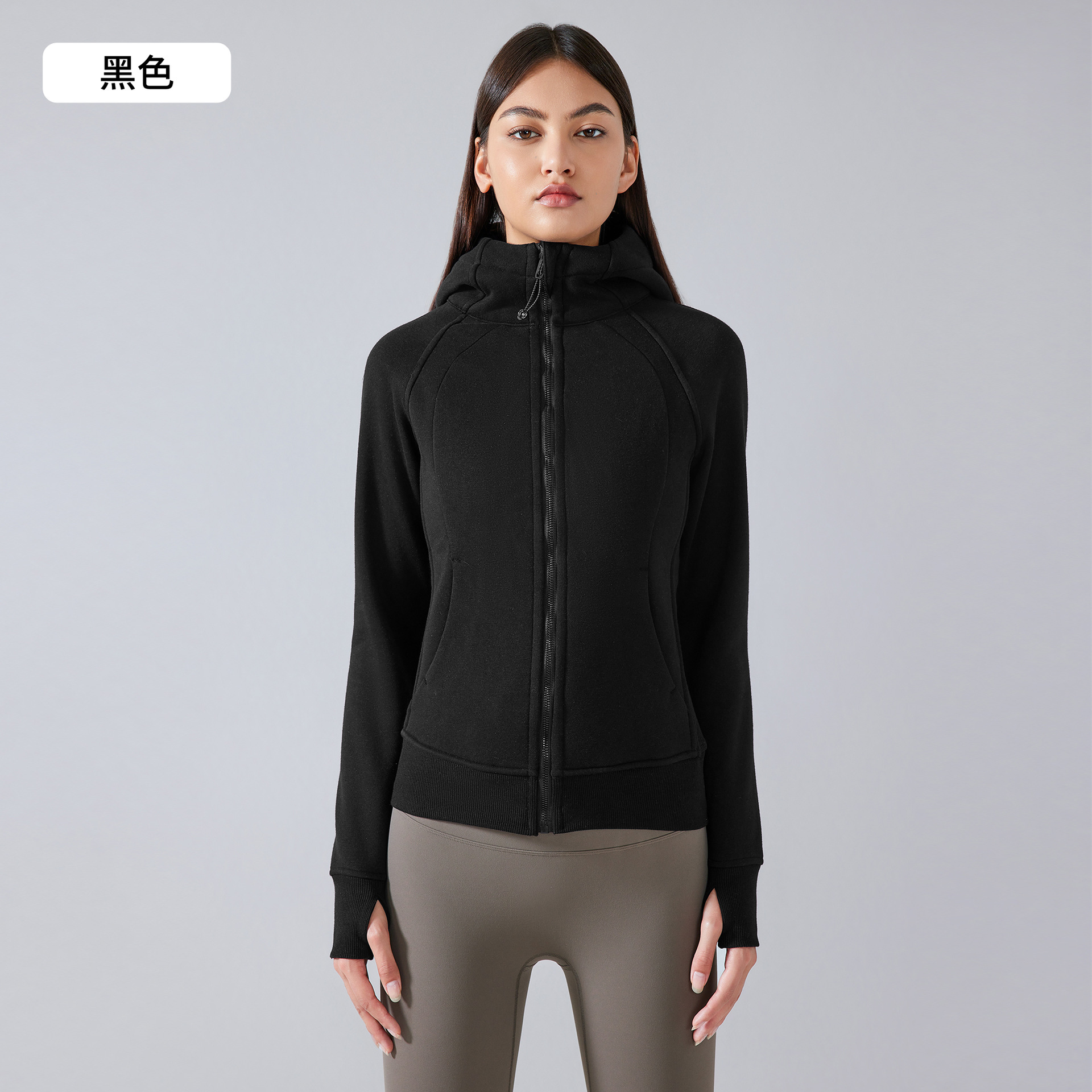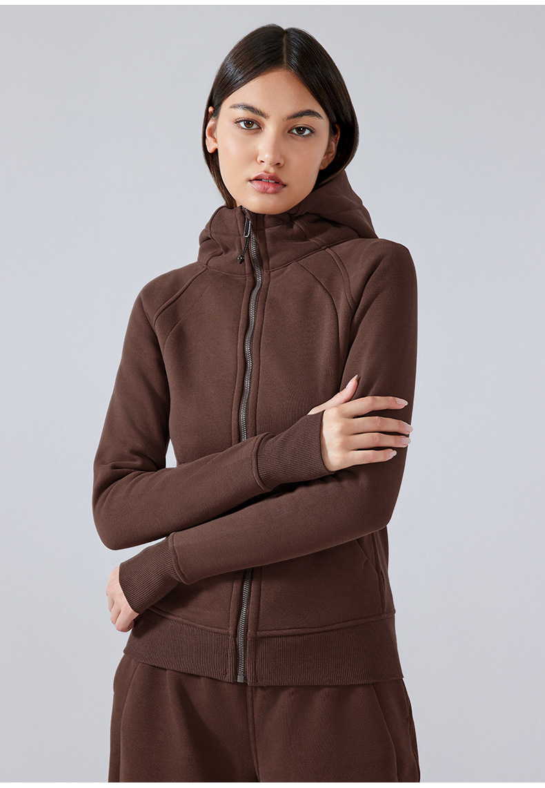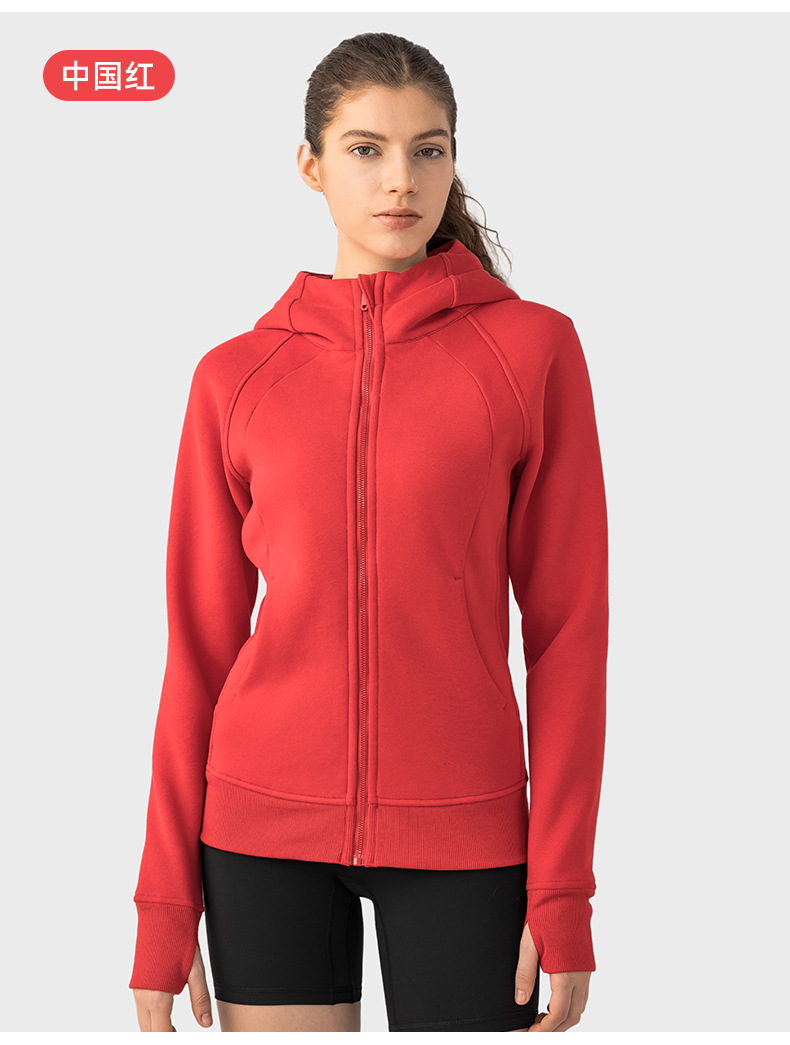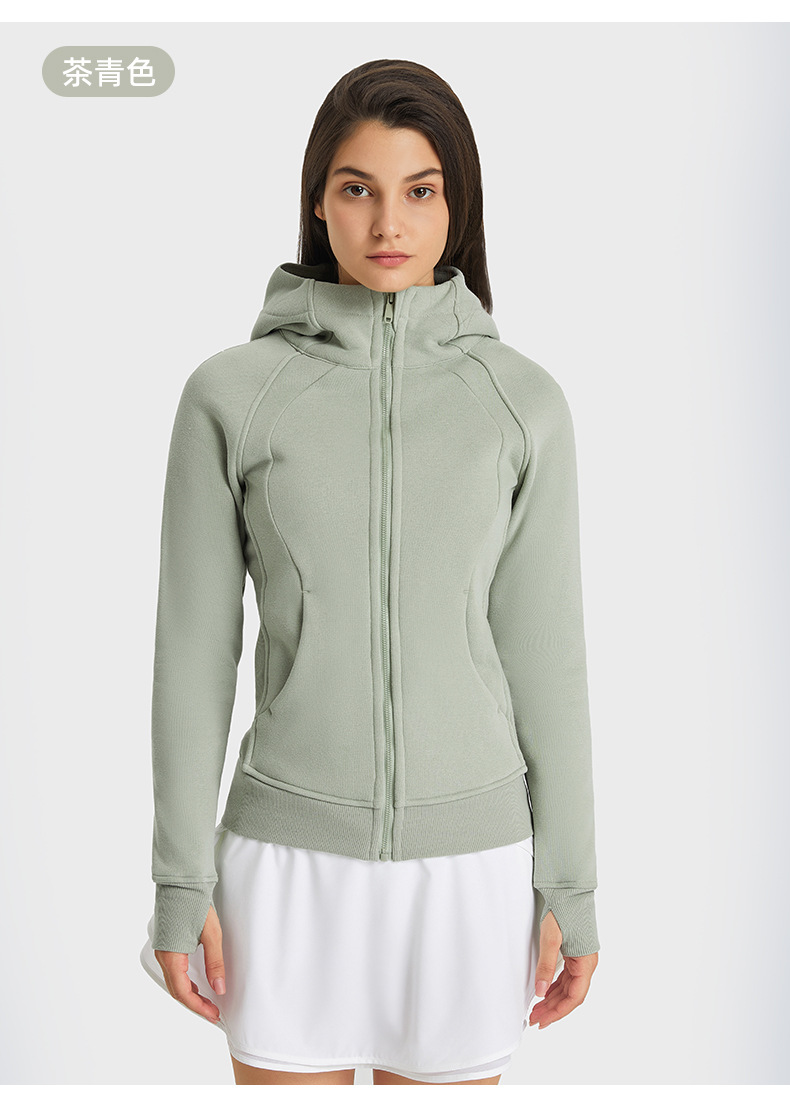 가을 겨울 후드 플리스 보온 스포츠 여성용 지퍼 가디건 요가복 슬림핏 피트니스 자켓 DJ028