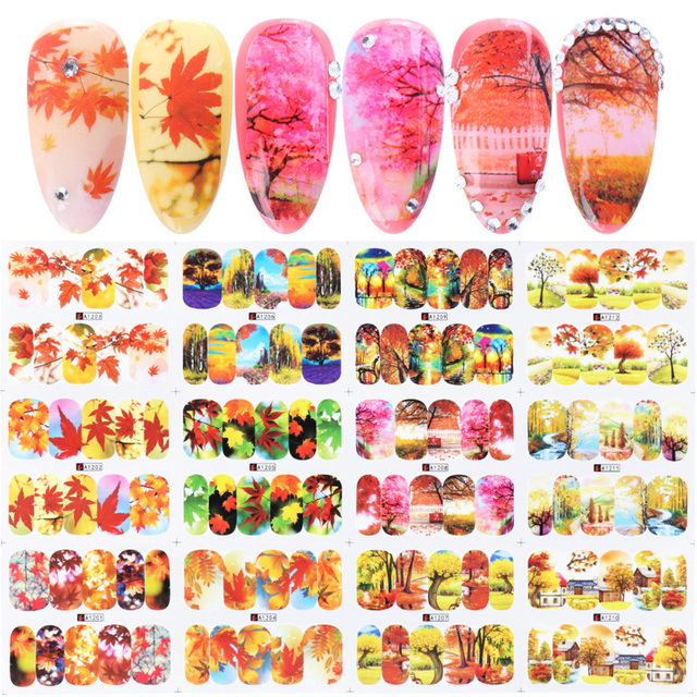 가을 메이플 리프 아트 라인 메이플 리프 패턴 추수 감사절 워터 마크 네일 스티커의 국경 간 새로운 네일 아트 스티커